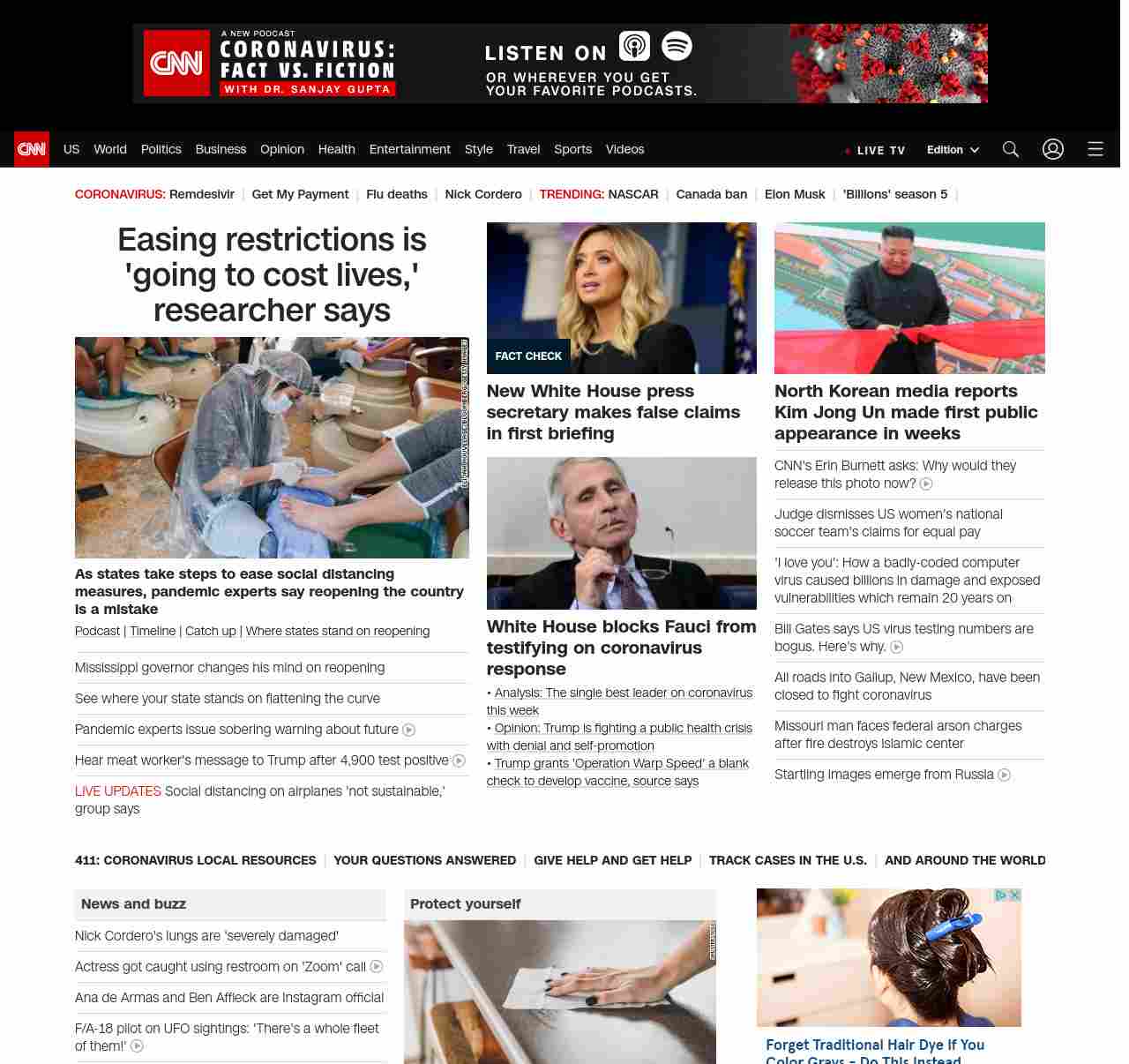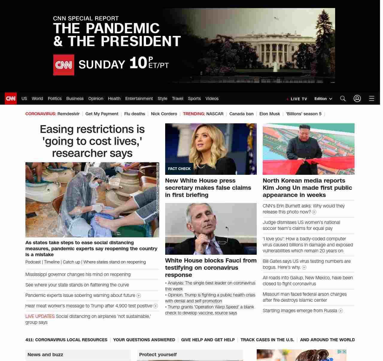 || screaming-banner-text banner-text-size–char-47″ data-analytics=”_list-hierarchical-xs_article_”> Easing restrictions is ‘going to cost lives,’ researcher says ||” , title: “CNN – Breaking News, Latest News and Videos” , siblings: {“articleList”:[{“uri”:”/2020/05/01/health/us-coronavirus-friday/index.html”,”headline”:”u003cstrong>As states take steps to ease social distancing measures, pandemic experts say reopening the country is a mistakeu003c/strong>”,”thumbnail”:”//cdn.cnn.com/cnnnext/dam/assets/200430193014-12-week-in-photos-0501-small-11.jpg”,”duration”:””,”description”:”u003ca href=”https://www.cnn.com/audio/podcasts/corona-virus” target=”_blank”>Podcastu003c/a> | u003ca href=”https://www.cnn.com/interactive/2020/health/covid19-pandemic-video-timeline/index.html” target=”_blank”>Timelineu003c/a> | u003ca href=”https://www.cnn.com/2020/05/01/world/coronavirus-newsletter-05-01-20/index.html” target=”_blank”>Catch upu003c/a> | u003ca href=”https://www.cnn.com/interactive/2020/us/states-reopen-coronavirus-trnd/” target=”_blank”>Where states stand on reopeningu003c/a>”,”layout”:””