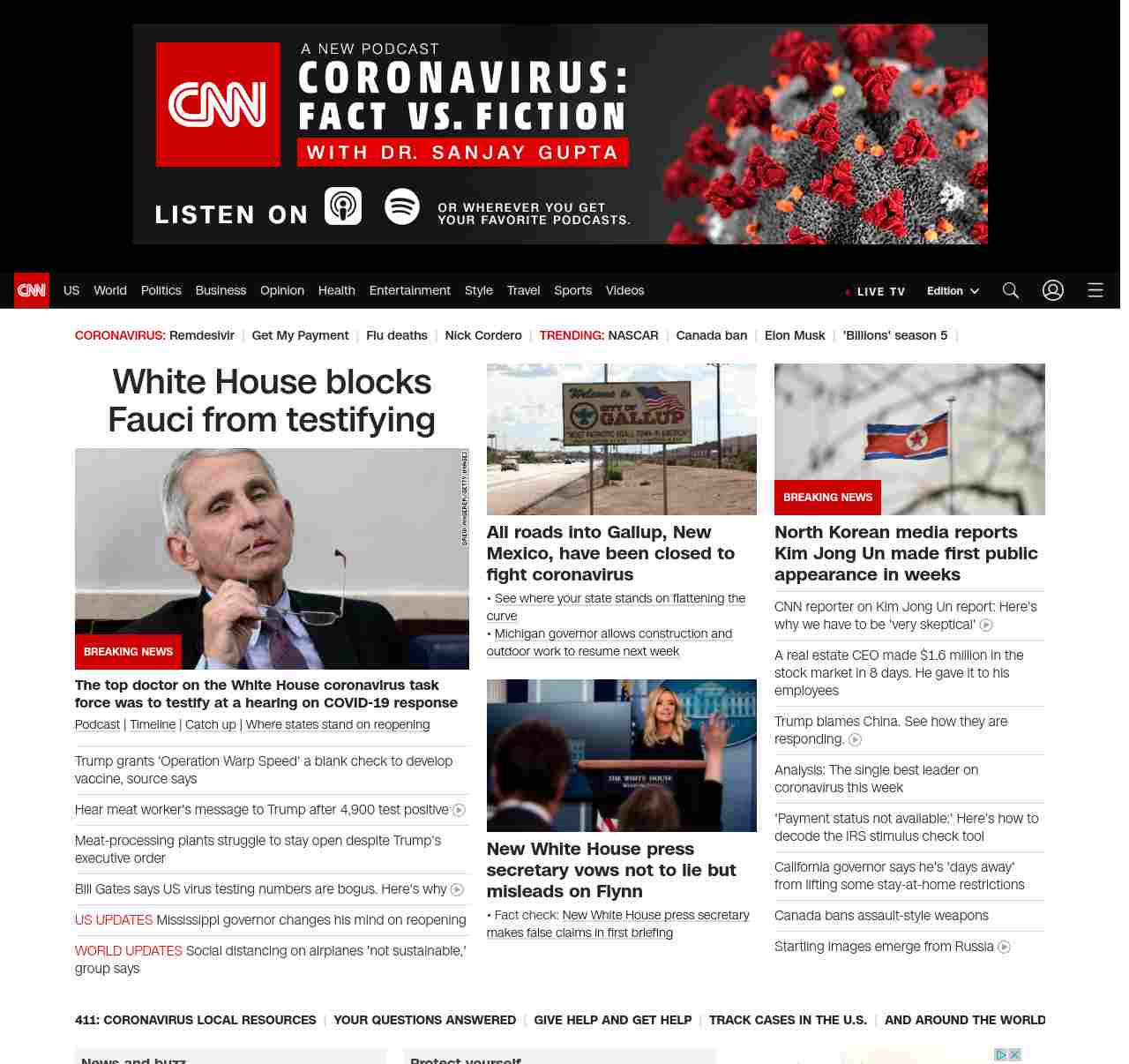 || screaming-banner-text banner-text-size–char-41″ data-analytics=”_list-hierarchical-xs_article_”> White House blocks Fauci from testifying ||” , title: “CNN – Breaking News, Latest News and Videos” , siblings: {“articleList”:[{“uri”:”/2020/05/01/politics/anthony-fauci-white-house-blocks-house-testimony/index.html”,”headline”:”u003cstrong>The top doctor on the White House coronavirus task force was to testify at a hearing on COVID-19 responseu003c/strong>”,”thumbnail”:”//cdn.cnn.com/cnnnext/dam/assets/200501192359-fauci-0422-small-11.jpg”,”duration”:””,”description”:”u003ca href=”https://www.cnn.com/audio/podcasts/corona-virus” target=”_blank”>Podcastu003c/a> | u003ca href=”https://www.cnn.com/interactive/2020/health/covid19-pandemic-video-timeline/index.html” target=”_blank”>Timelineu003c/a> | u003ca href=”https://www.cnn.com/2020/05/01/world/coronavirus-newsletter-05-01-20/index.html” target=”_blank”>Catch upu003c/a> | u003ca href=”https://www.cnn.com/interactive/2020/us/states-reopen-coronavirus-trnd/” target=”_blank”>Where states stand on reopeningu003c/a>”,”layout”:””