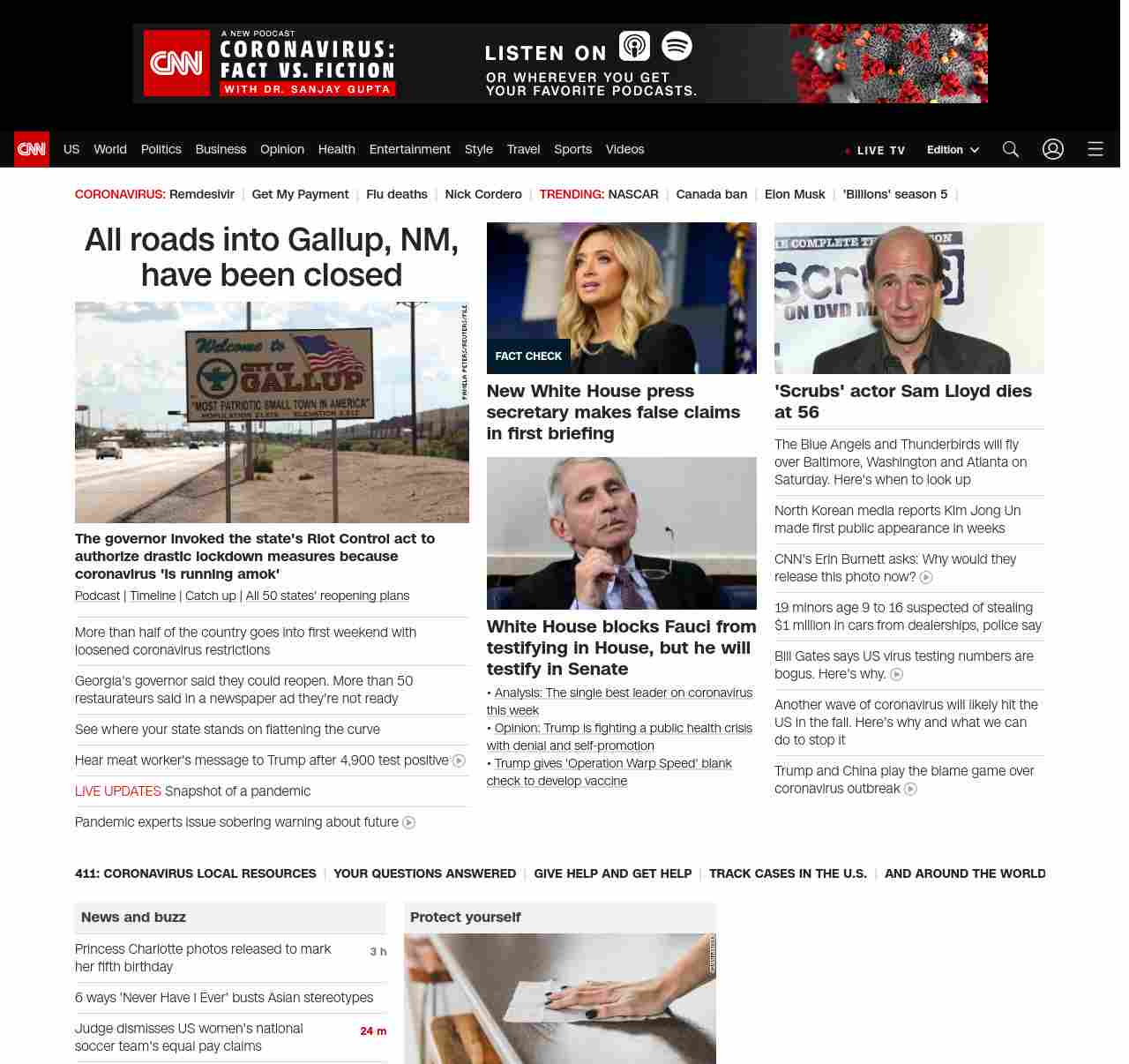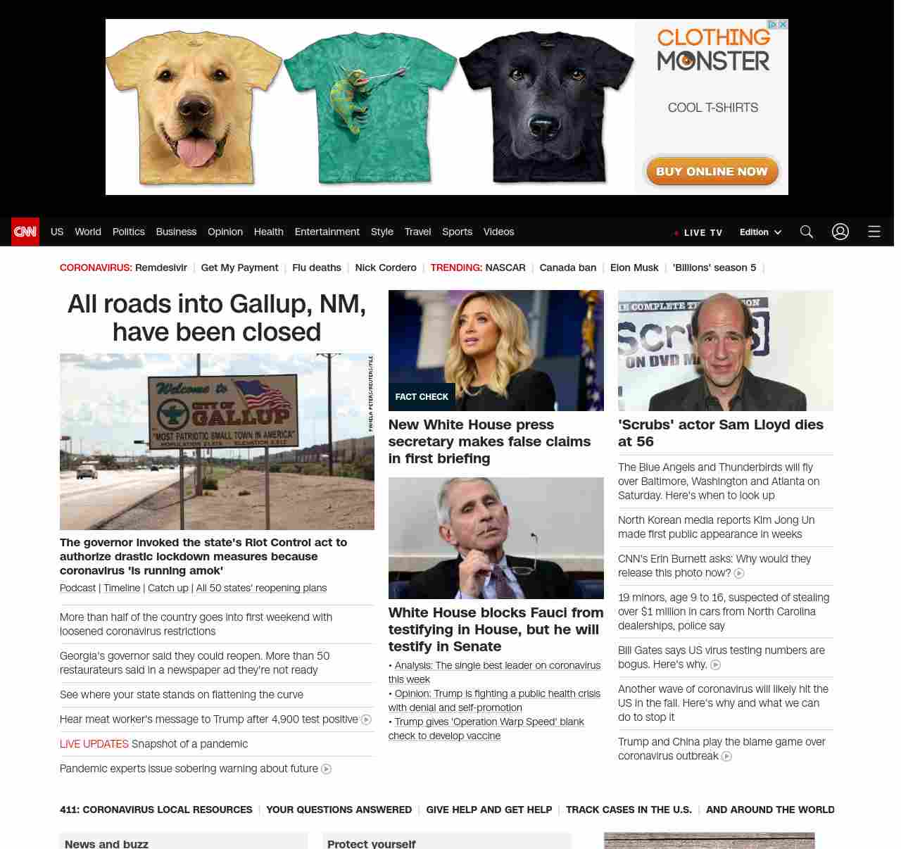 || screaming-banner-text banner-text-size–char-44″ data-analytics=”_list-hierarchical-xs_article_”> All roads into Gallup, NM, have been closed ||” , title: “CNN – Breaking News, Latest News and Videos” , siblings: {“articleList”:[{“uri”:”/2020/05/01/us/new-mexico-town-lockdown-coronavirus-trnd/index.html”,”headline”:”u003cstrong>The governor invoked the state’s Riot Control act to authorize drastic lockdown measures because coronavirus ‘is running amok’ u003c/strong>”,”thumbnail”:”//cdn.cnn.com/cnnnext/dam/assets/200501183531-gallup-new-mexico-sign-small-11.jpg”,”duration”:””,”description”:”u003ca href=”https://www.cnn.com/audio/podcasts/corona-virus” target=”_blank”>Podcastu003c/a> | u003ca href=”https://www.cnn.com/interactive/2020/health/covid19-pandemic-video-timeline/index.html” target=”_blank”>Timelineu003c/a> | u003ca href=”https://www.cnn.com/2020/05/01/world/coronavirus-newsletter-05-01-20/index.html” target=”_blank”>Catch upu003c/a> | u003ca href=”https://www.cnn.com/interactive/2020/us/states-reopen-coronavirus-trnd/” target=”_blank”>All 50 states’ reopening plans u003c/a>”,”layout”:””