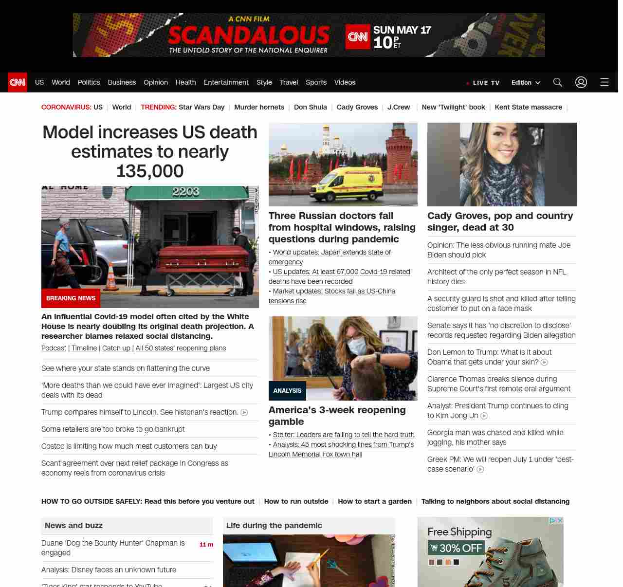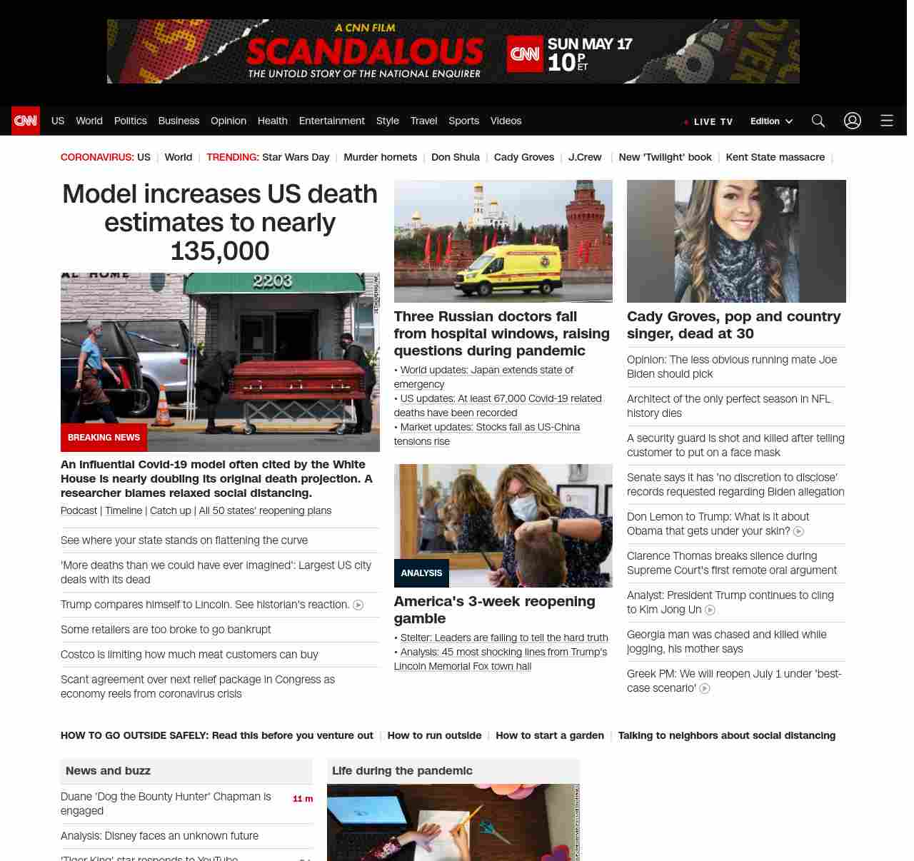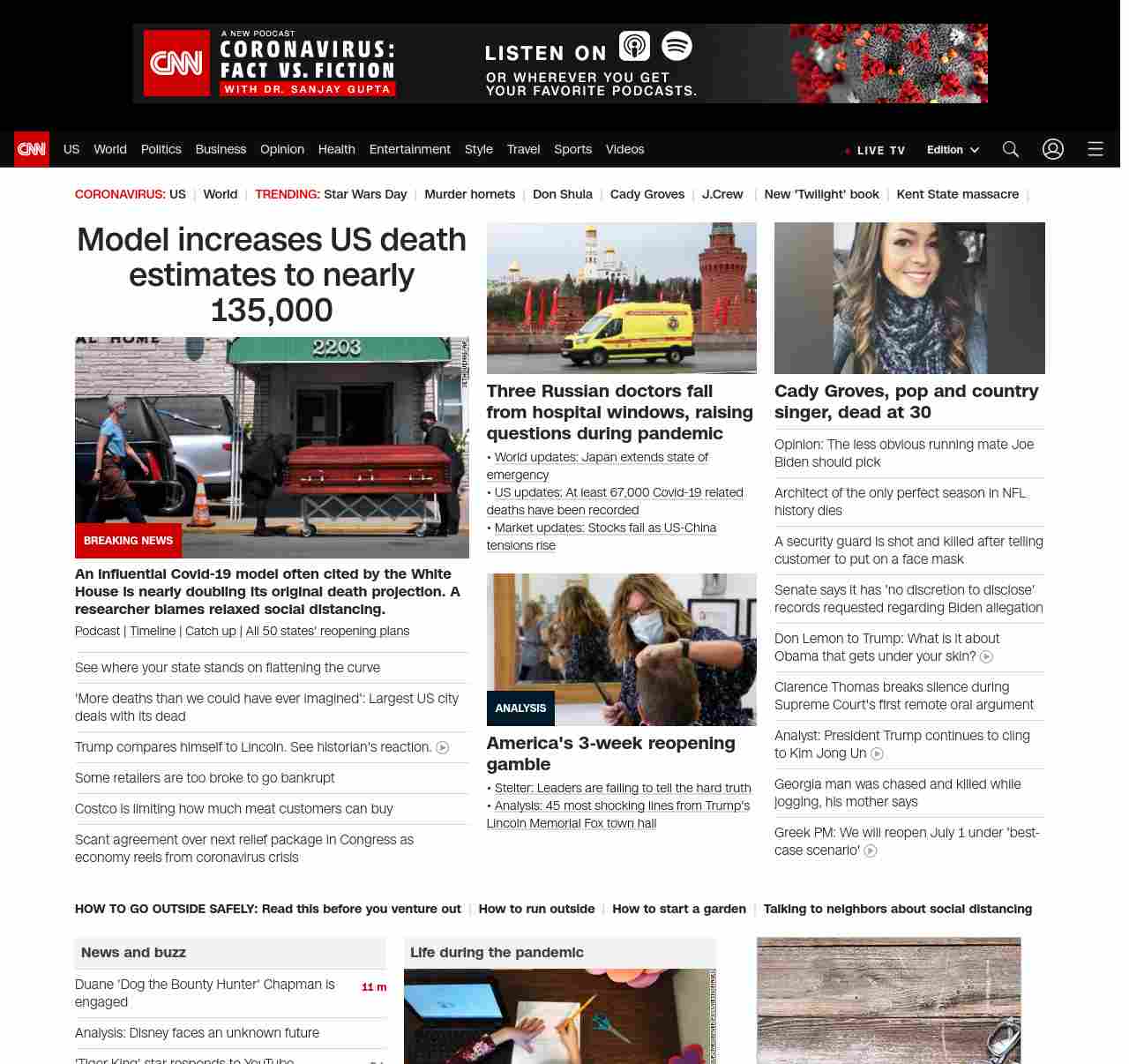 CNN1: FOXVCNN=|Model increases US death estimates to nearly 135, 000| ((lubuntu at wor2))
