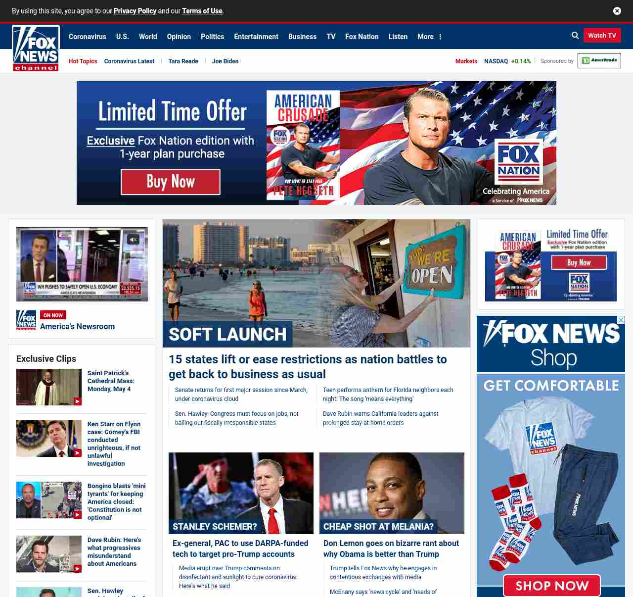 FN: [[SOFT LAUNCH]] 15 states lift or ease restrictions as nation battles to get back to business as usual ((lubuntu at wor2))