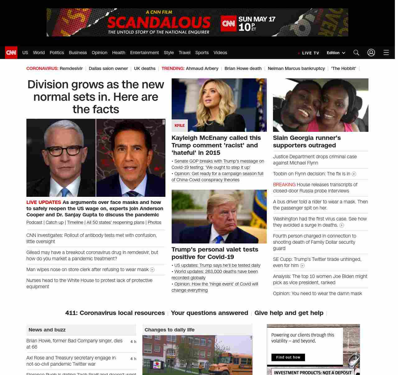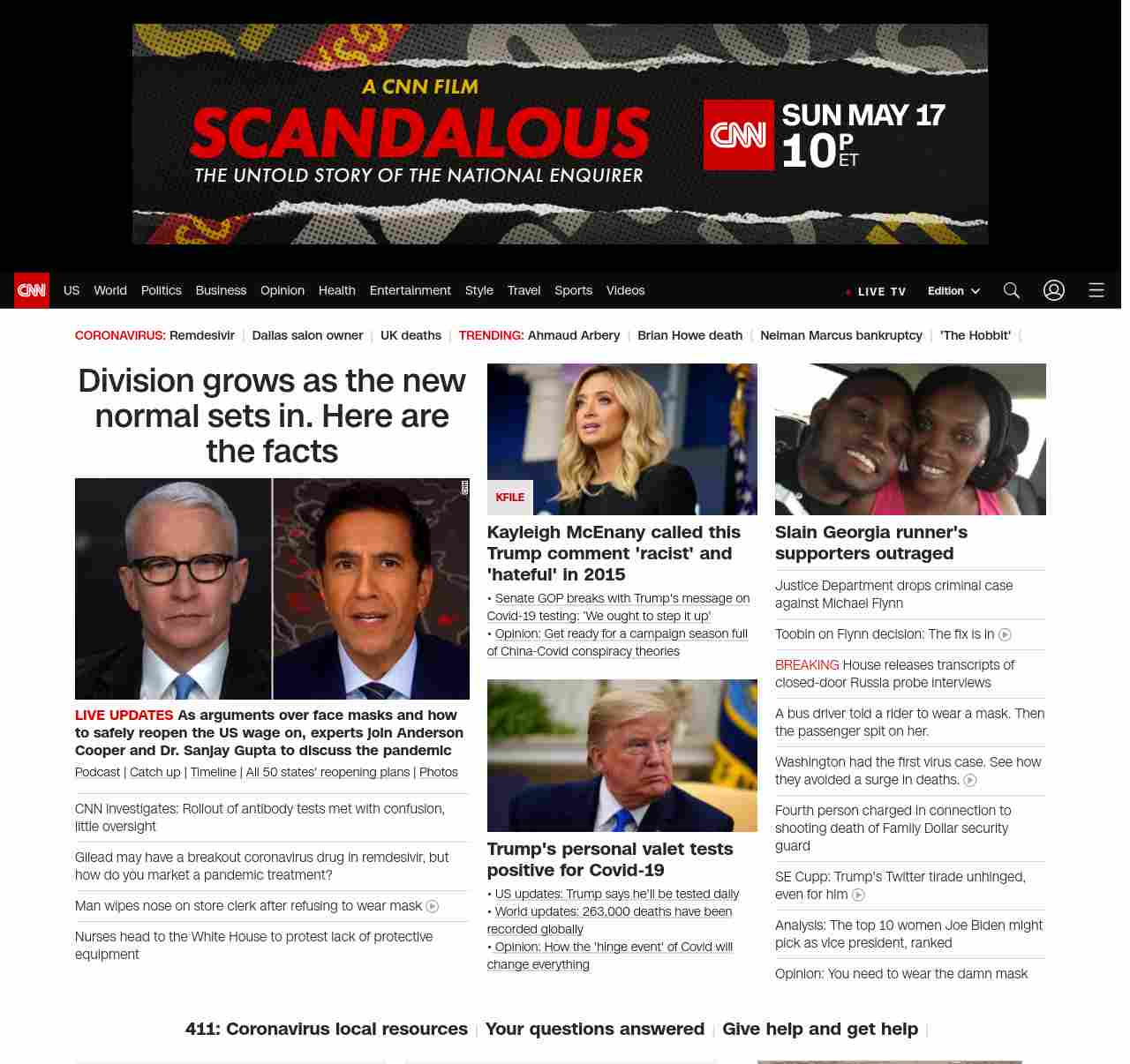 || screaming-banner-text banner-text-size–char-47″ data-analytics=”_list-hierarchical-xs_hyperlink_”> Division grows as the new normal sets in. Here are the facts ||” , title: “CNN – Breaking News, Latest News and Videos” , siblings: {“articleList”:[{“uri”:”/2020/05/07/politics/coronavirus-antibody-testing-problems-cdc-fda-invs/index.html”,”headline”:”CNN investigates: Rollout of antibody tests met with confusion, little oversight”,”thumbnail”:”//cdn.cnn.com/cnnnext/dam/assets/200502162248-brooklyn-antibody-testing-0425-restricted-small-11.jpg”,”duration”:””,”description”:”Public health experts, including members of the White House Coronavirus Task Force, have argued accurate Covid-19 antibody tests can support efforts to get Americans back to work by determining who may have overcome the virus.”,”layout”:””