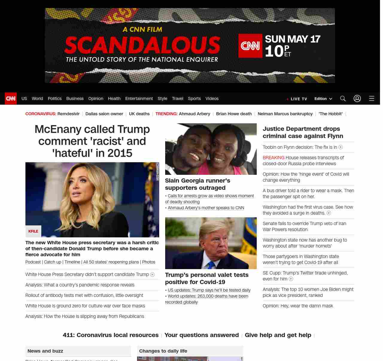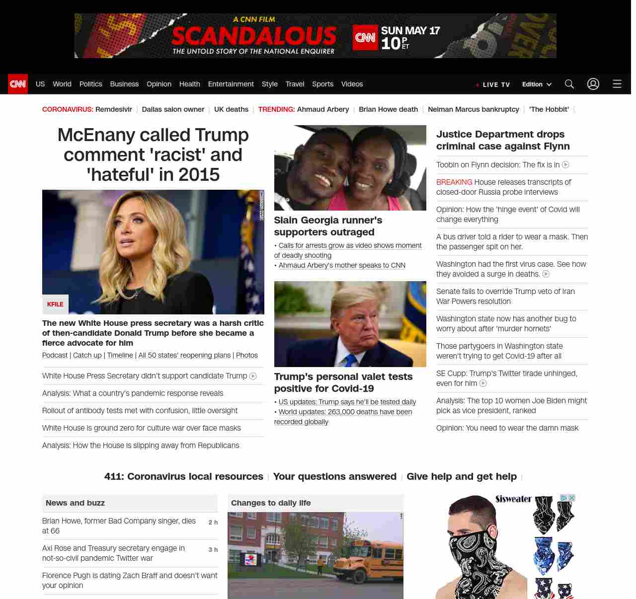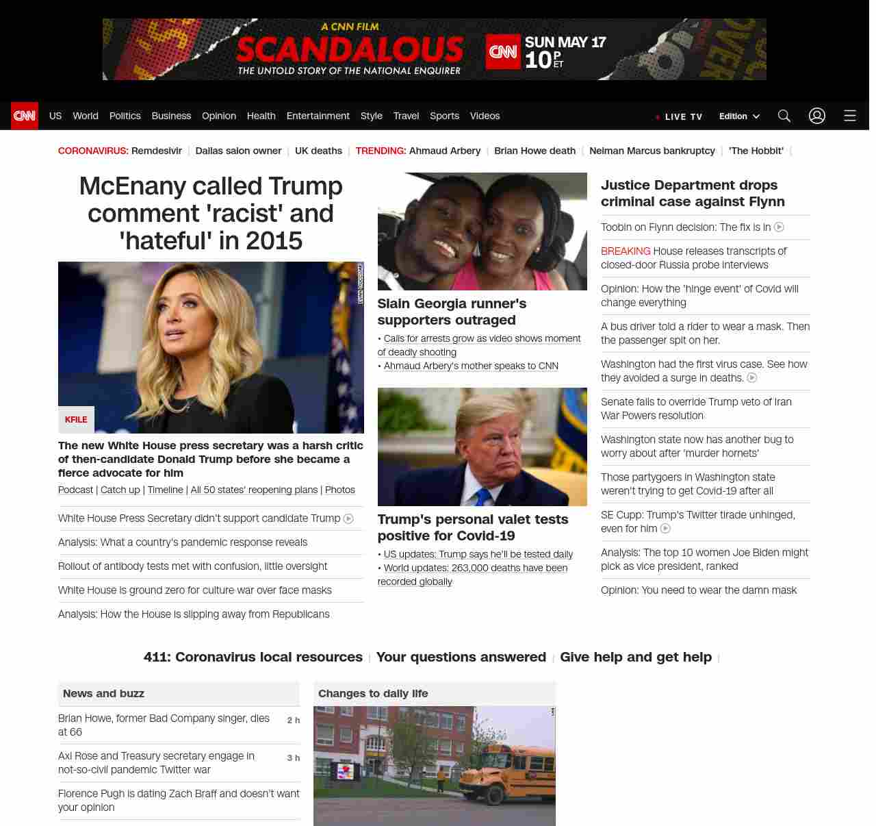 || screaming-banner-text banner-text-size–char-47″ data-analytics=”_list-hierarchical-xs_article_”> McEnany called Trump comment ‘racist’ and ‘hateful’ in 2015 ||” , title: “CNN – Breaking News, Latest News and Videos” , siblings: {“articleList”:[{“uri”:”/2020/05/07/politics/kayleigh-mcenany-trump-2015/index.html”,”headline”:”u003cstrong>The new White House press secretary was a harsh critic of then-candidate Donald Trump before she became a fierce advocate for himu003c/strong>”,”thumbnail”:”//cdn.cnn.com/cnnnext/dam/assets/200501141948-03-mcenany-presser-0501-small-11.jpg”,”duration”:””,”description”:”u003ca href=”https://www.cnn.com/audio/podcasts/corona-virus” target=”_blank”>Podcastu003c/a> | u003ca href=”https://www.cnn.com/us/live-news/us-coronavirus-update-05-07-20/h_571ad94e608077c5665cba2b933ab886″ target=”_blank”>Catch upu003c/a> | u003ca href=”https://www.cnn.com/interactive/2020/health/covid19-pandemic-video-timeline/index.html” target=”_blank”>Timelineu003c/a> | u003ca href=”https://www.cnn.com/interactive/2020/us/states-reopen-coronavirus-trnd/” target=”_blank”>All 50 states’ reopening plansu003c/a> | u003ca href=”http://www.cnn.com/2020/04/24/world/gallery/coronavirus-after-lockdown/index.html” target=”_blank”>Photosu003c/a>”,”layout”:””