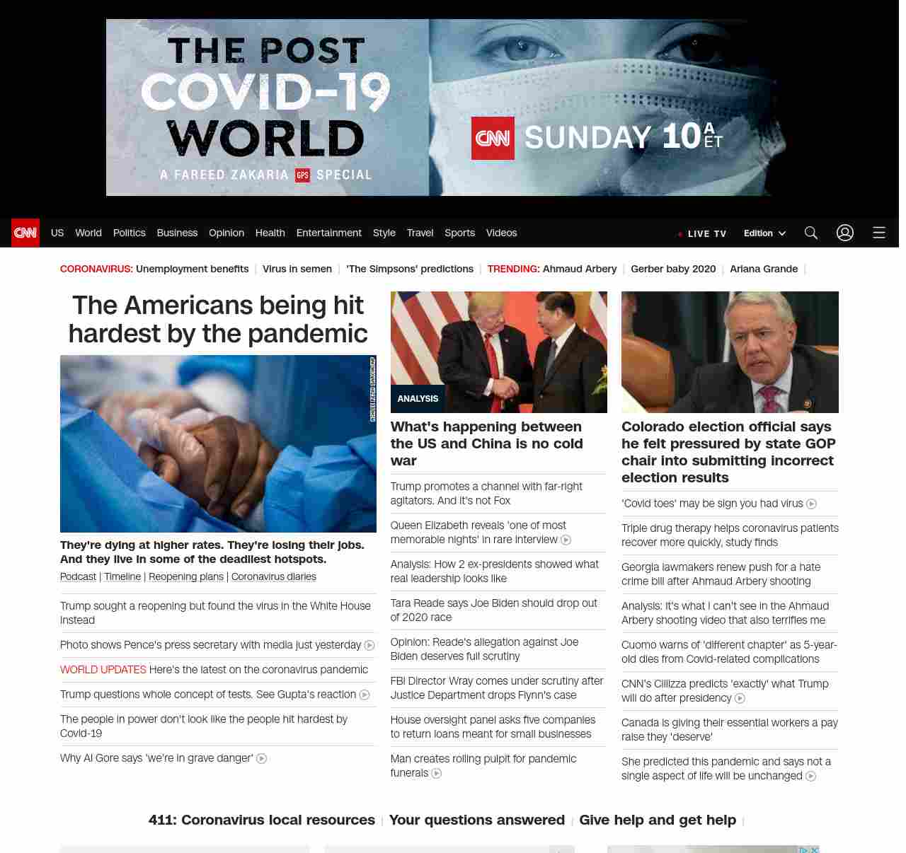 CNN1: FOXVCNN=|The Americans being hit hardest by the pandemic| ((lubuntu at wor2))