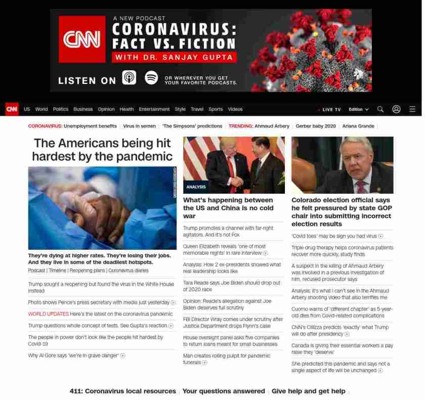 || screaming-banner-text banner-text-size–char-47″ data-analytics=”_list-hierarchical-xs_article_”> The Americans being hit hardest by the pandemic ||” , title: “CNN – Breaking News, Latest News and Videos” , siblings: {“articleList”:[{“uri”:”/2020/05/08/us/coronavirus-pandemic-race-impact-trnd/index.html”,”headline”:”u003cstrong>They’re dying at higher rates. They’re losing their jobs. And they live in some of the deadliest hotspots.u003c/strong>”,”thumbnail”:”//cdn.cnn.com/cnnnext/dam/assets/200508203513-coronavirus-patient-chicago-0428-small-11.jpg”,”duration”:””,”description”:”u003ca href=”https://www.cnn.com/audio/podcasts/corona-virus” target=”_blank”>Podcastu003c/a> | u003ca href=”https://www.cnn.com/interactive/2020/health/covid19-pandemic-video-timeline/index.html” target=”_blank”>Timelineu003c/a> | u003ca href=”https://www.cnn.com/interactive/2020/us/states-reopen-coronavirus-trnd/” target=”_blank”>Reopening plansu003c/a> | u003ca href=”https://www.cnn.com/specials/world/coronavirus-diaries” target=”_blank”>Coronavirus diariesu003c/a>”,”layout”:””