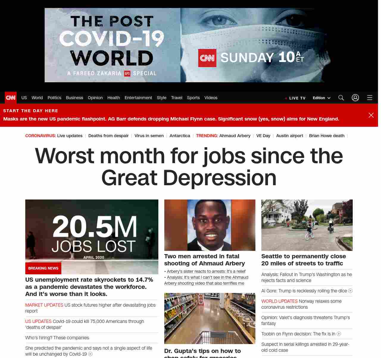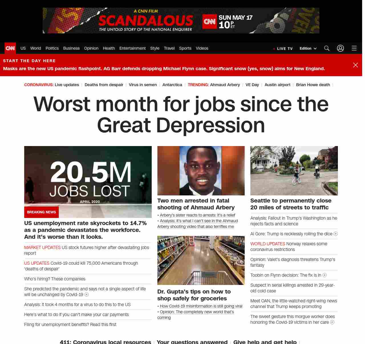 || banner-text–maximized banner-text-size–char-41″> 20.5 million US jobs lost in one month ||” , title: “CNN – Breaking News, Latest News and Videos” , siblings: {“articleList”:[{“uri”:”/business/live-news/stock-market-news-050820/index.html”,”headline”:”US stock futures higher after devastating jobs report”,”thumbnail”:”//cdn.cnn.com/cnnnext/dam/assets/200501133724-01-unemployment-line-arkansas-0406-small-11.jpg”,”duration”:””,”description”:””,”layout”:””