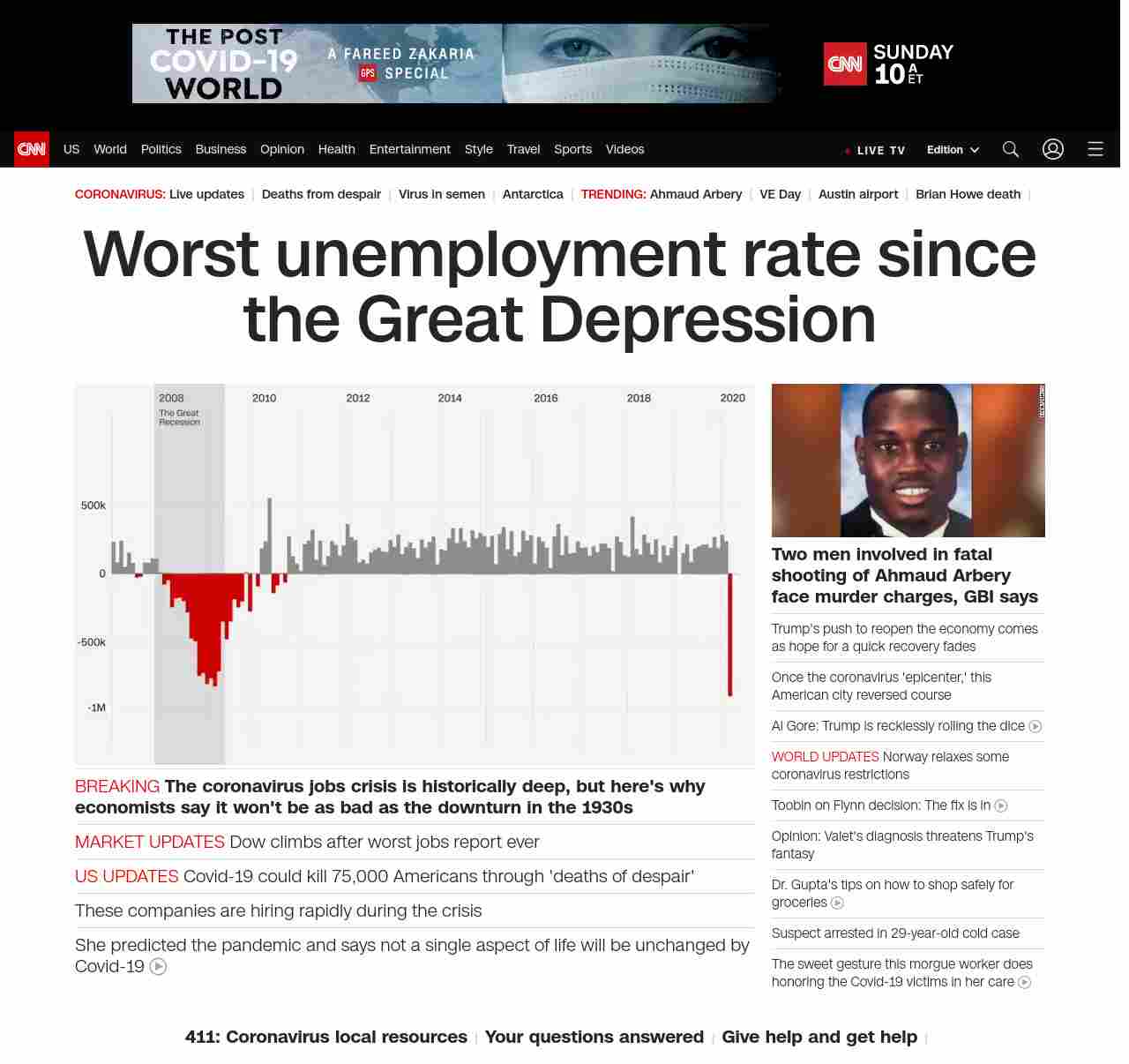 || banner-text–natural”> Worst unemployment rate since the Great Depression ||” , title: “CNN – Breaking News, Latest News and Videos” , siblings: {“articleList”:[{“uri”:”/business/live-news/stock-market-news-050820/index.html”,”headline”:”Dow climbs after worst jobs report ever”,”thumbnail”:”//cdn.cnn.com/cnnnext/dam/assets/200501133724-01-unemployment-line-arkansas-0406-small-11.jpg”,”duration”:””,”description”:””,”layout”:””