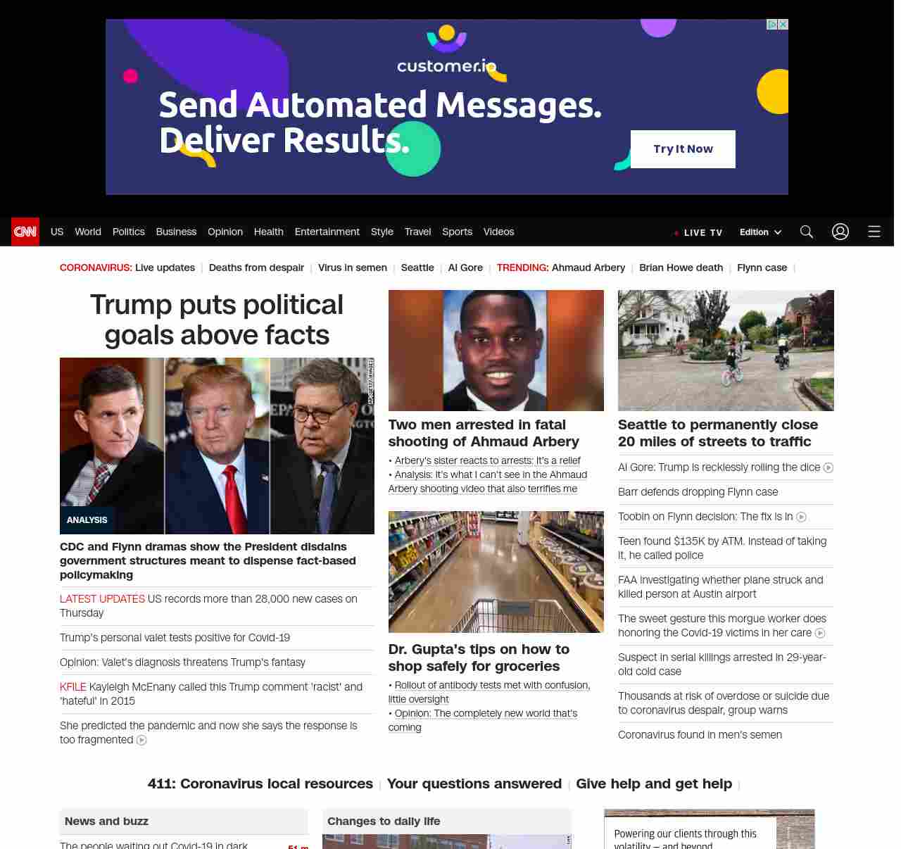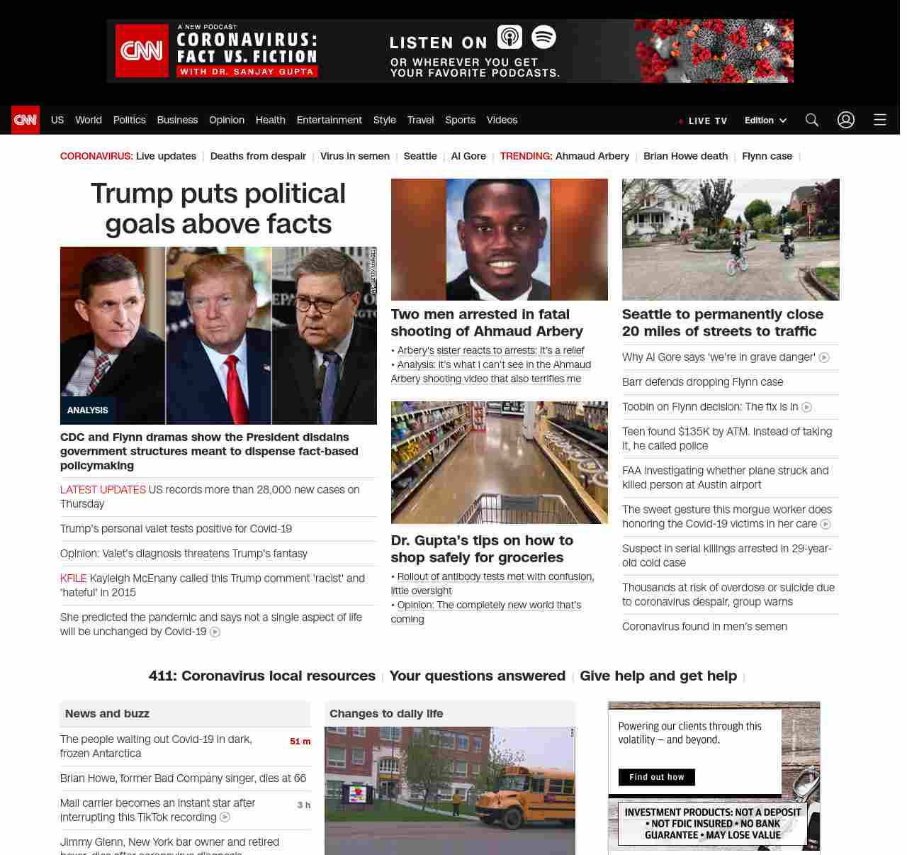 || screaming-banner-text banner-text-size–char-41″ data-analytics=”_list-hierarchical-xs_article_”> Trump puts political goals above facts ||” , title: “CNN – Breaking News, Latest News and Videos” , siblings: {“articleList”:[{“uri”:”/2020/05/07/politics/donald-trump-coronavirus-cdc-michael-flynn-william-barr-russia-investigation/index.html”,”headline”:”u003cstrong>CDC and Flynn dramas show the President disdains government structures meant to dispense fact-based policymakingu003c/strong>”,”thumbnail”:”//cdn.cnn.com/cnnnext/dam/assets/200213160313-flynn-barr-trump-split-restricted-small-11.jpg”,”duration”:””,”description”:””,”layout”:””