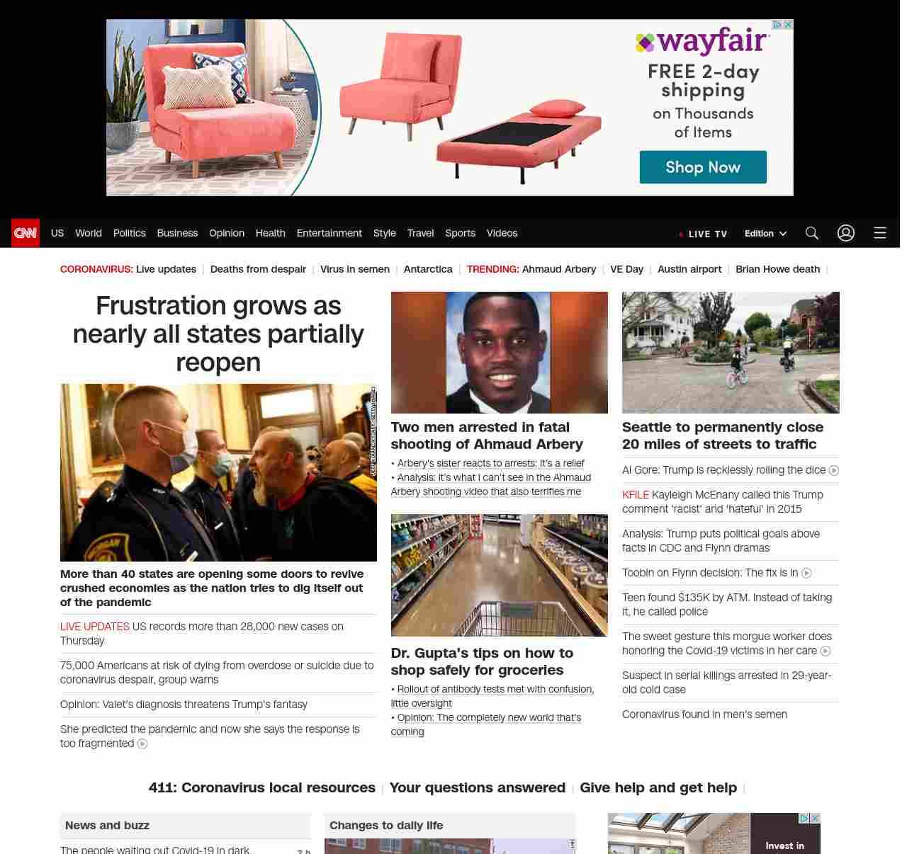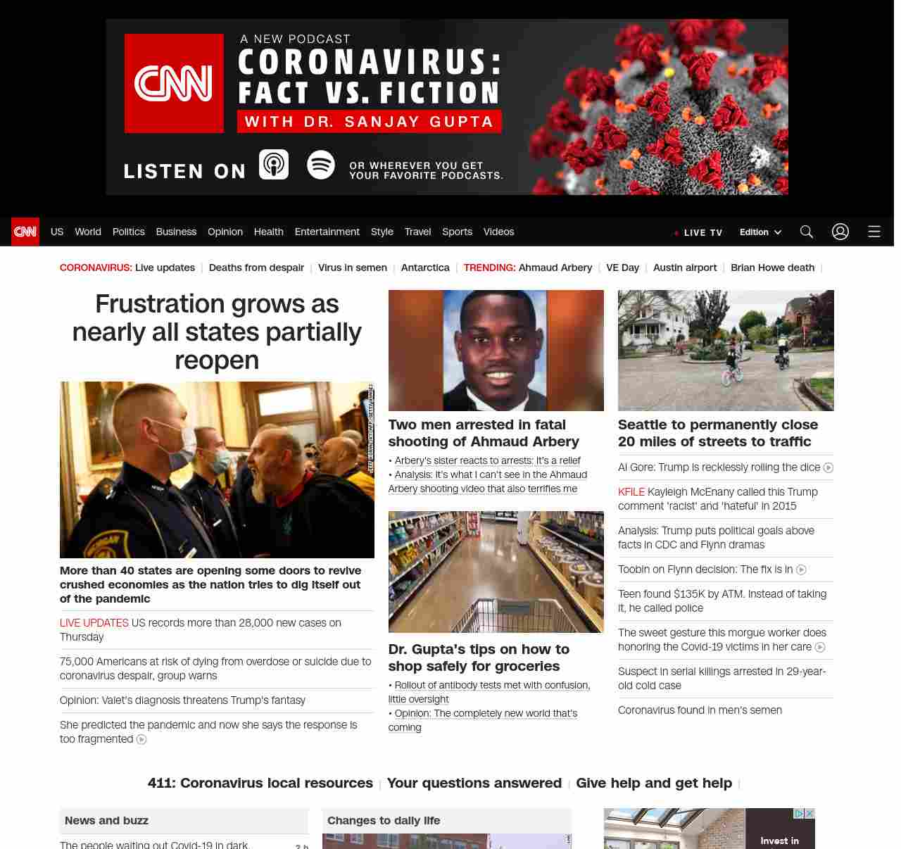 || screaming-banner-text banner-text-size–char-47″ data-analytics=”_list-hierarchical-xs_article_”> Frustration grows as nearly all states partially reopen ||” , title: “CNN – Breaking News, Latest News and Videos” , siblings: {“articleList”:[{“uri”:”/2020/05/08/health/us-coronavirus-friday/index.html”,”headline”:”u003cstrong>More than 40 states are opening some doors to revive crushed economies as the nation tries to dig itself out of the pandemicu003c/strong>”,”thumbnail”:”//cdn.cnn.com/cnnnext/dam/assets/200430183126-michigan-capitol-protest-0430-small-11.jpg”,”duration”:””,”description”:”With nearly all states partially reopened, fears and frustrations are dividing the nation as Americans struggle with how to combat the u003ca href=”http://www.cnn.com/world/live-news/coronavirus-pandemic-05-08-20-intl/index.html” target=”_blank”>deadly coronavirus. u003c/a>”,”layout”:””