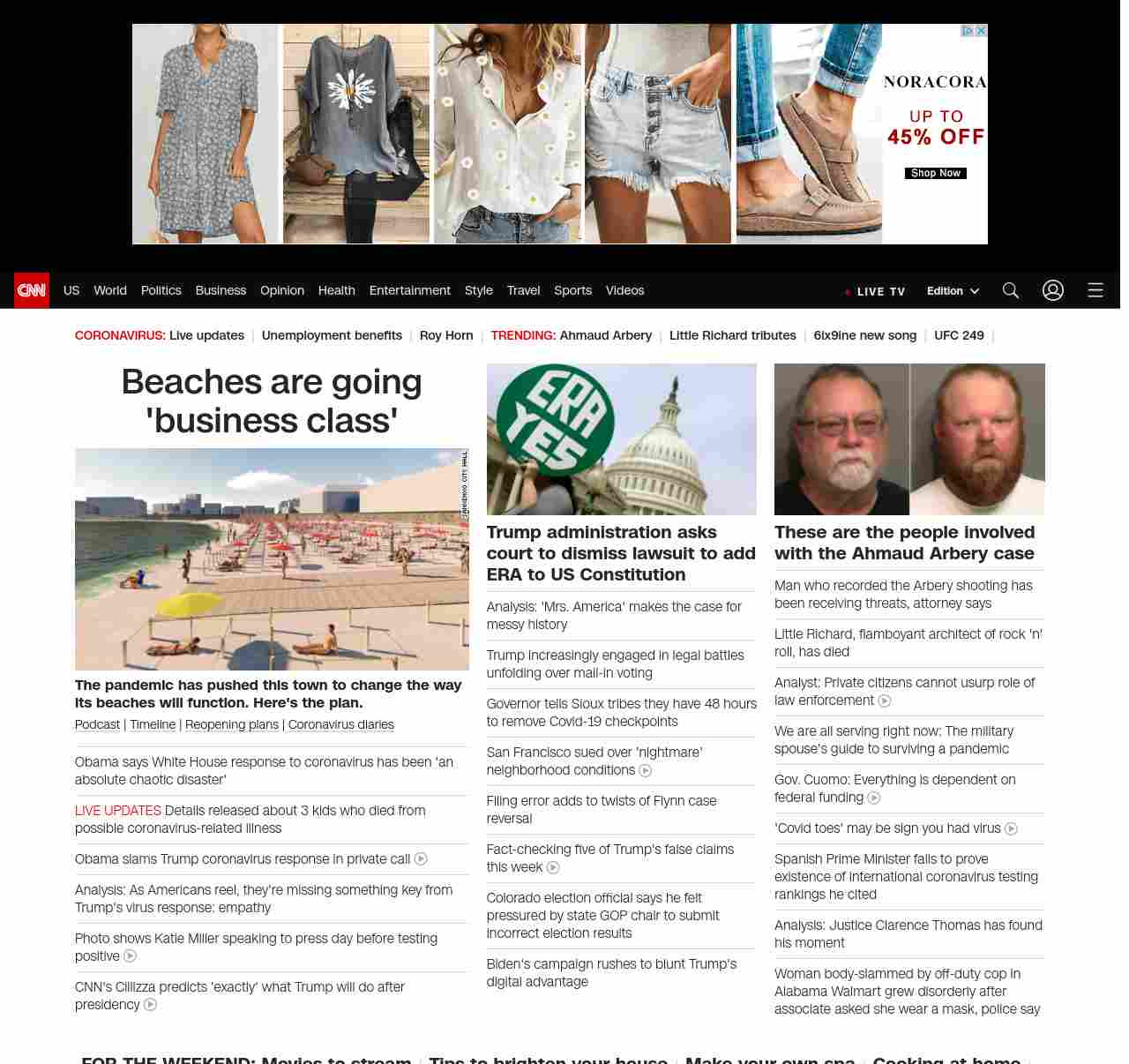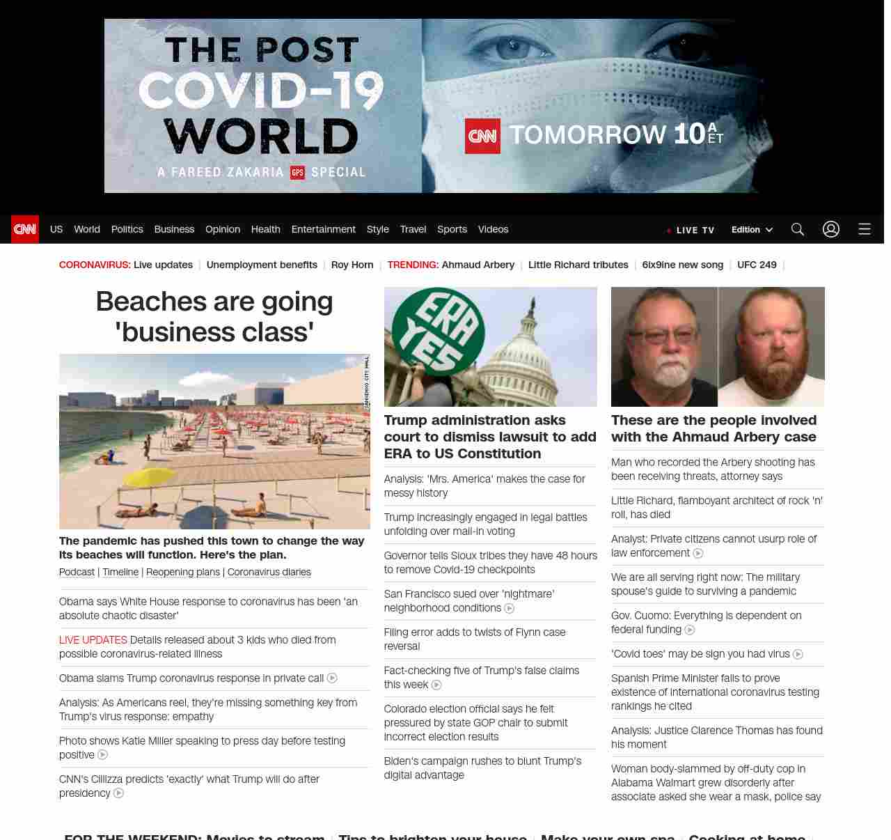 || screaming-banner-text banner-text-size–char-35″ data-analytics=”_list-hierarchical-xs_article_”> Beaches are going ‘business class’ ||” , title: “CNN – Breaking News, Latest News and Videos” , siblings: {“articleList”:[{“uri”:”/2020/05/09/politics/obama-trump-coronavirus-response-flynn-case/index.html”,”headline”:”Obama says White House response to coronavirus has been ‘an absolute chaotic disaster'”,”thumbnail”:”//cdn.cnn.com/cnnnext/dam/assets/200414101259-obama-biden-file-2016-small-11.jpg”,”duration”:””,”description”:”u003ca href=”https://www.cnn.com/2012/12/26/us/barack-obama—fast-facts/index.html” target=”_blank”>Former President Barack Obamau003c/a> delivered a blistering critique of the Trump administration’s u003ca href=”https://www.cnn.com/interactive/2020/health/coronavirus-us-maps-and-cases/” target=”_blank”>response to the coronavirus crisisu003c/a>, describing it as “an absolute chaotic disaster” during a private call Friday night with people who worked for him in the White House and across his administration.”,”layout”:””
