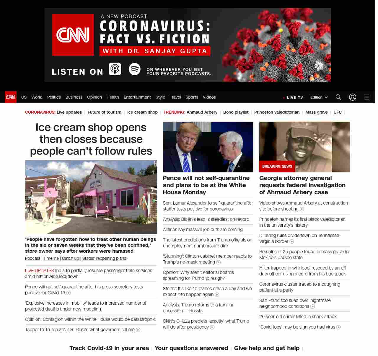 || screaming-banner-text banner-text-size–char-47″ data-analytics=”_list-hierarchical-xs_article_”> Ice cream shop opens then closes because people can’t follow rules ||” , title: “CNN – Breaking News, Latest News and Videos” , siblings: {“articleList”:[{“uri”:”/2020/05/10/us/ice-cream-shop-closes-employee-harassment-trnd/index.html”,”headline”:”u003cstrong>’People have forgotten how to treat other human beings in the six or seven weeks that they’ve been confined,’ store owner says after workers were harassedu003c/strong>”,”thumbnail”:”//cdn.cnn.com/cnnnext/dam/assets/200510182214-ice-cream-shop-closes-one-day-after-opening-small-11.jpg”,”duration”:””,”description”:”u003ca href=”https://www.cnn.com/audio/podcasts/corona-virus” target=”_blank”>Podcastu003c/a> | u003ca href=”https://www.cnn.com/interactive/2020/health/covid19-pandemic-video-timeline/index.html” target=”_blank”>Timelineu003c/a> | u003ca href=”https://www.cnn.com/2020/05/10/world/coronavirus-newsletter-05-10-20-intl/index.html” target=”_blank”>Catch up u003c/a>| u003ca href=”https://www.cnn.com/interactive/2020/us/states-reopen-coronavirus-trnd/” target=”_blank”>States’ reopening plansu003c/a>”,”layout”:””