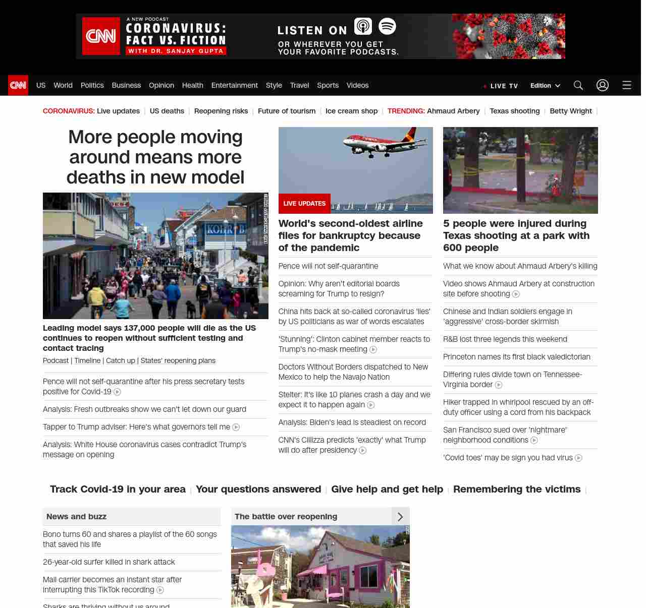 CNN3: “:”u003cstrong>Leading model says 137, 000 people will die as the US continues to reopen without sufficient testing and contact tracingu003c/strong>”, “BANNER=|pagerendered| ((lubuntu at wor2))