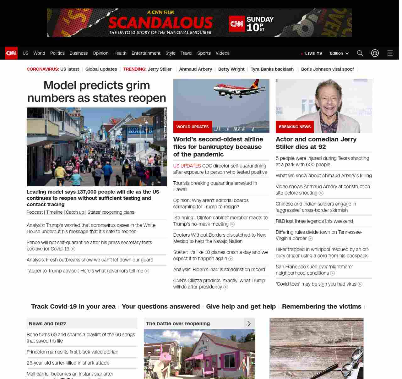 || screaming-banner-text banner-text-size–char-47″ data-analytics=”_list-hierarchical-xs_article_”> More people moving around means more deaths in new model ||” , title: “CNN – Breaking News, Latest News and Videos” , siblings: {“articleList”:[{“uri”:”/2020/05/11/health/us-coronavirus-monday/index.html”,”headline”:”u003cstrong>Leading model says 137,000 people will die as the US continues to reopen without sufficient testing and contact tracingu003c/strong>”,”thumbnail”:”//cdn.cnn.com/cnnnext/dam/assets/200511041451-02-coronavirus-reopening-0510-maryland-small-11.jpg”,”duration”:””,”description”:”u003ca href=”https://www.cnn.com/audio/podcasts/corona-virus” target=”_blank”>Podcastu003c/a> | u003ca href=”https://www.cnn.com/interactive/2020/health/covid19-pandemic-video-timeline/index.html” target=”_blank”>Timelineu003c/a> | u003ca href=”https://www.cnn.com/2020/05/10/world/coronavirus-newsletter-05-10-20-intl/index.html” target=”_blank”>Catch up u003c/a>| u003ca href=”https://www.cnn.com/interactive/2020/us/states-reopen-coronavirus-trnd/” target=”_blank”>States’ reopening plansu003c/a>”,”layout”:””