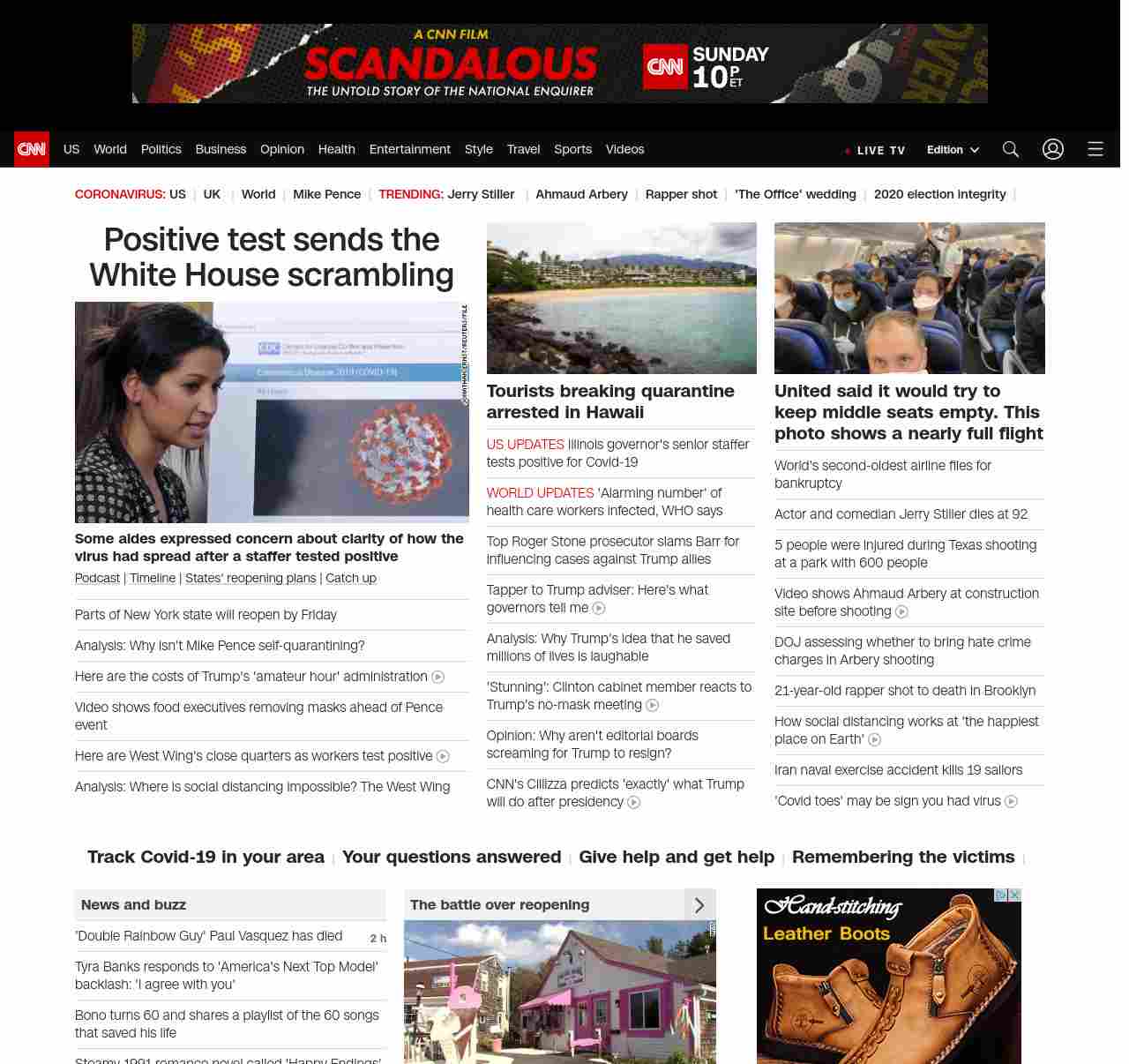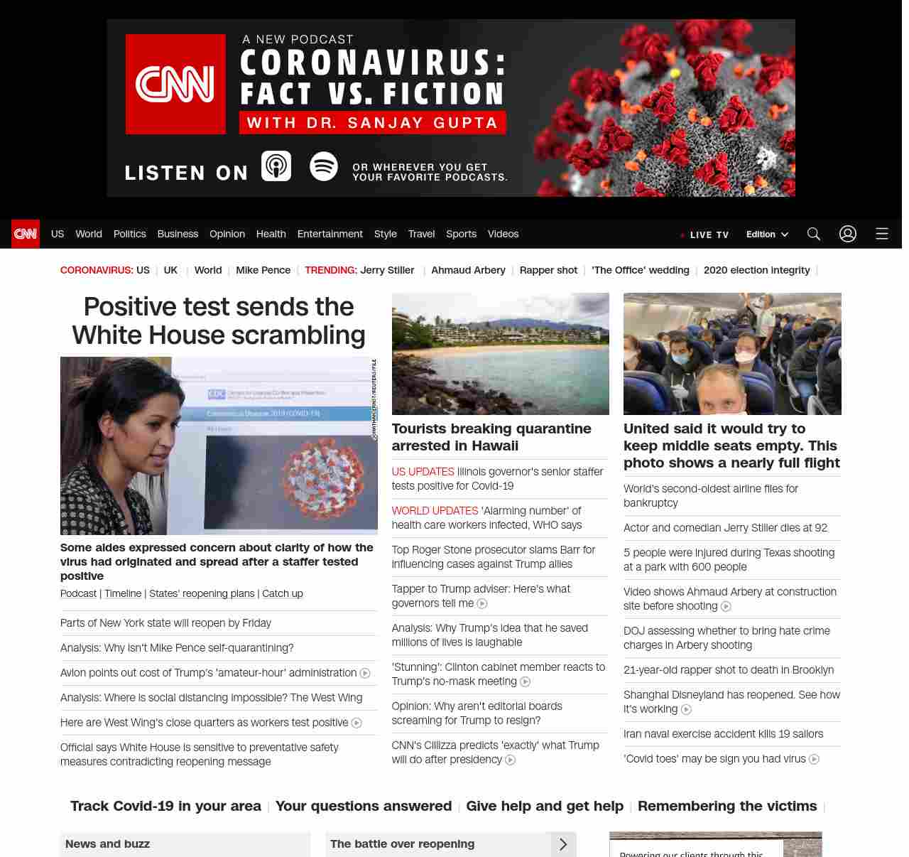 || screaming-banner-text banner-text-size–char-47″ data-analytics=”_list-hierarchical-xs_article_”> Positive test sends the White House scrambling ||” , title: “CNN – Breaking News, Latest News and Videos” , siblings: {“articleList”:[{“uri”:”/2020/05/11/politics/katie-miller-contract-tracing-coronavirus/index.html”,”headline”:”u003cstrong>Some aides expressed concern about clarity of how the virus had spread after a staffer tested positiveu003c/strong>”,”thumbnail”:”//cdn.cnn.com/cnnnext/dam/assets/200511085306-02-katie-miller-file-small-11.jpg”,”duration”:””,”description”:”u003ca href=”https://www.cnn.com/audio/podcasts/corona-virus” target=”_blank”>Podcastu003c/a> | u003ca href=”https://www.cnn.com/interactive/2020/health/covid19-pandemic-video-timeline/index.html” target=”_blank”>Timelineu003c/a> | u003ca href=”https://www.cnn.com/interactive/2020/us/states-reopen-coronavirus-trnd/” target=”_blank”>States’ reopening plansu003c/a> | u003ca href=”https://www.cnn.com/2020/05/11/world/coronavirus-newsletter-05-11-20-intl/index.html” target=”_blank”>Catch upu003c/a>”,”layout”:””