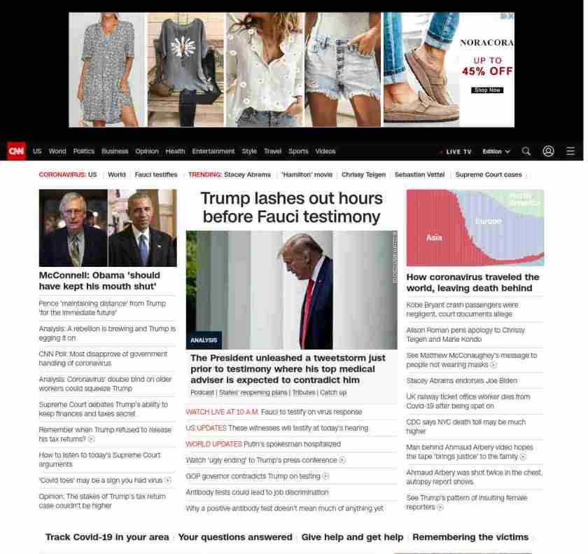 || screaming-banner-text banner-text-size–char-47″ data-analytics=”_list-hierarchical-xs_article_”> Trump lashes out hours before Fauci testimony ||” , title: “CNN – Breaking News, Latest News and Videos” , siblings: {“articleList”:[{“uri”:”/2020/05/11/politics/mitch-mcconnell-barack-obama-coronavirus-response/index.html”,”headline”:”McConnell: Obama ‘should have kept his mouth shut'”,”thumbnail”:”//cdn.cnn.com/cnnnext/dam/assets/190709194149-mcconnell-obama-split-small-11.jpg”,”duration”:””,”description”:”u003ca href=”https://www.cnn.com/audio/podcasts/corona-virus” target=”_blank”>Podcastu003c/a> | u003ca href=”https://www.cnn.com/interactive/2020/health/covid19-pandemic-video-timeline/index.html” target=”_blank”>Timelineu003c/a> | u003ca href=”https://www.cnn.com/2020/05/11/world/coronavirus-newsletter-05-11-20-intl/index.html” target=”_blank”>Catch upu003c/a> | u003ca href=”https://www.cnn.com/interactive/2020/us/states-reopen-coronavirus-trnd/” target=”_blank”>States’ reopening plansu003c/a> | u003ca href=”https://www.cnn.com/interactive/2020/health/coronavirus-victims-memories/” target=”_blank”>Tributesu003c/a>”,”layout”:””