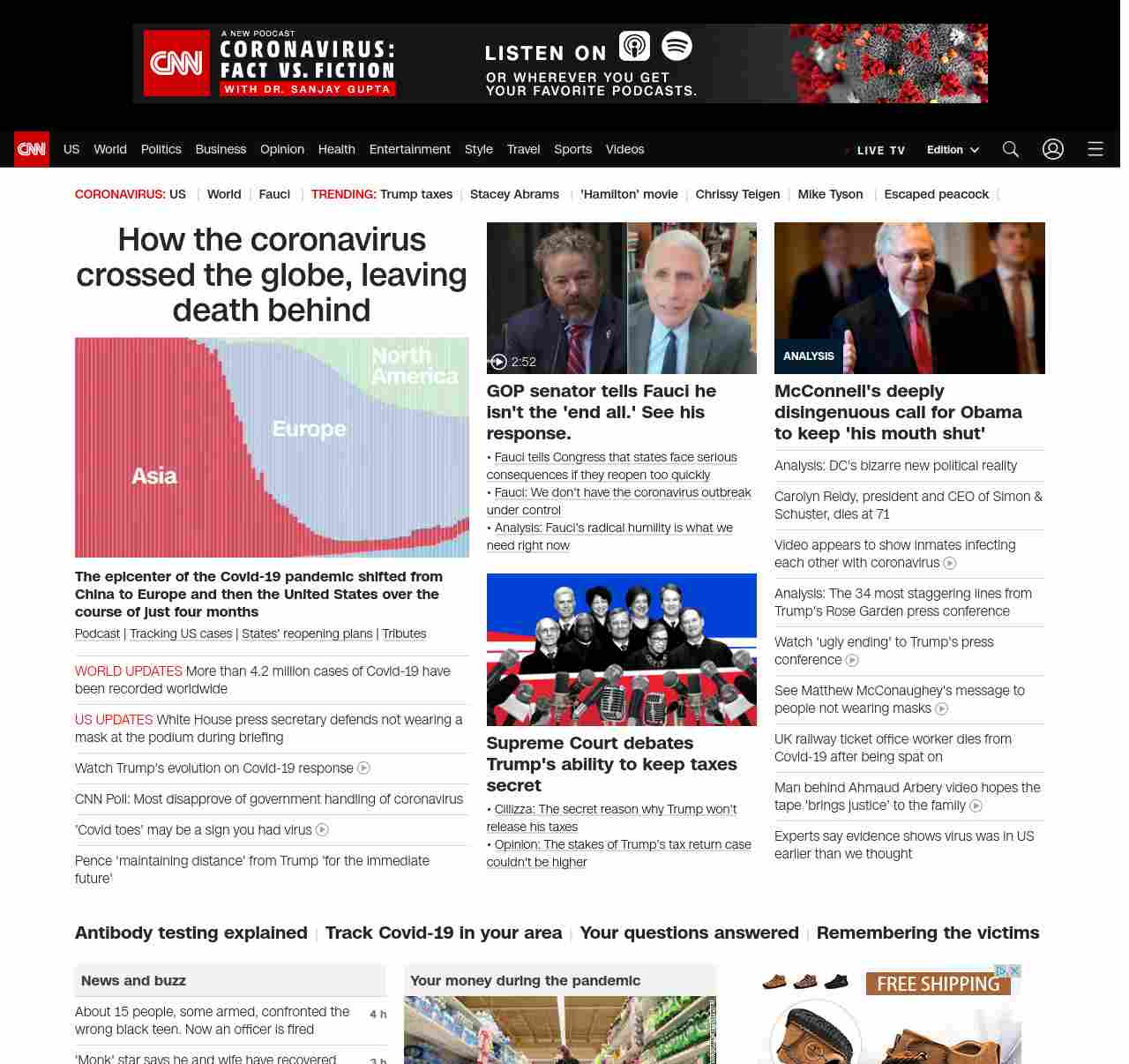 || screaming-banner-text banner-text-size–char-47″ data-analytics=”_list-hierarchical-xs_hyperlink_”> How the coronavirus crossed the globe, leaving death behind ||” , title: “CNN – Breaking News, Latest News and Videos” , siblings: {“articleList”:[{“uri”:”/us/live-news/us-coronavirus-update-05-12-20/index.html”,”headline”:”White House press secretary defends not wearing a mask at the podium during briefing “,”thumbnail”:”//cdn.cnn.com/cnnnext/dam/assets/200213175739-03-coronavirus-0213-small-11.jpg”,”duration”:””,”description”:””,”layout”:””