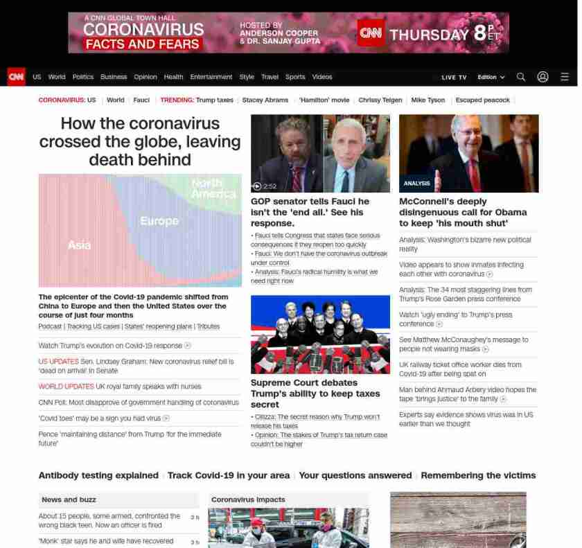 || screaming-banner-text banner-text-size–char-47″ data-analytics=”_list-hierarchical-xs_article_”> Fauci cautions Senate. Trump pushes to reopen ||” , title: “CNN – Breaking News, Latest News and Videos” , siblings: {“articleList”:[{“uri”:”/videos/politics/2020/03/18/president-trump-evolution-coronavirus-response-jm-orig.cnn”,”headline”:”Watch Trump’s evolution on Covid-19 response “,”thumbnail”:”//cdn.cnn.com/cnnnext/dam/assets/200318141020-05-trump-coronavirus-presser-0318-small-11.jpg”,”duration”:”04:10″,”description”:”President Trump’s comments about the coronavirus have evolved since the first confirmed US case on January 22. CNN’s tally of cases is based on records from Johns Hopkins University & Medicine Coronavirus Resource Center. “,”layout”:””,”iconType”:”video”