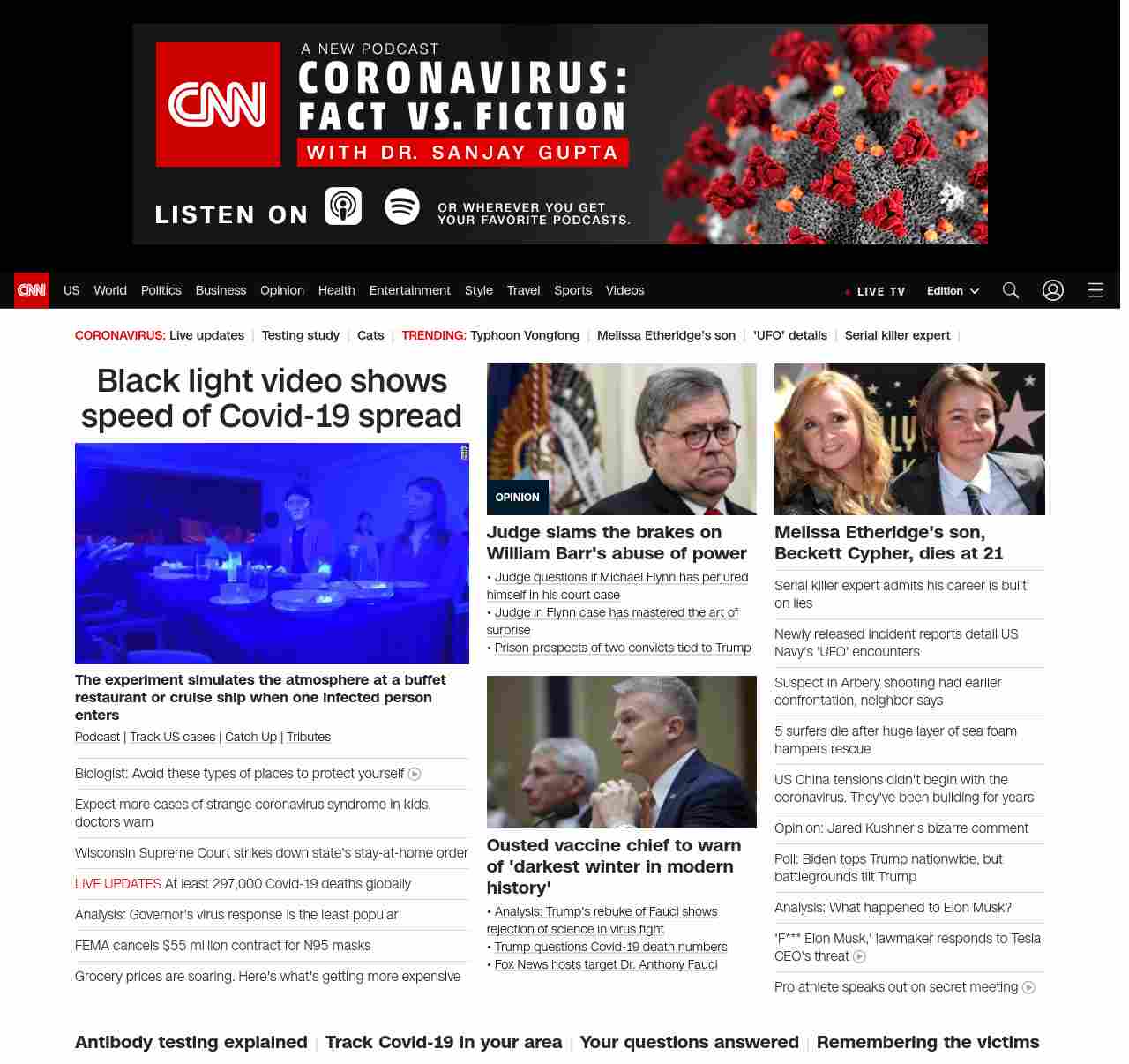 CNN1: FOXVCNN=|Black light video shows speed of Covid-19 spread| ((lubuntu at wor2))