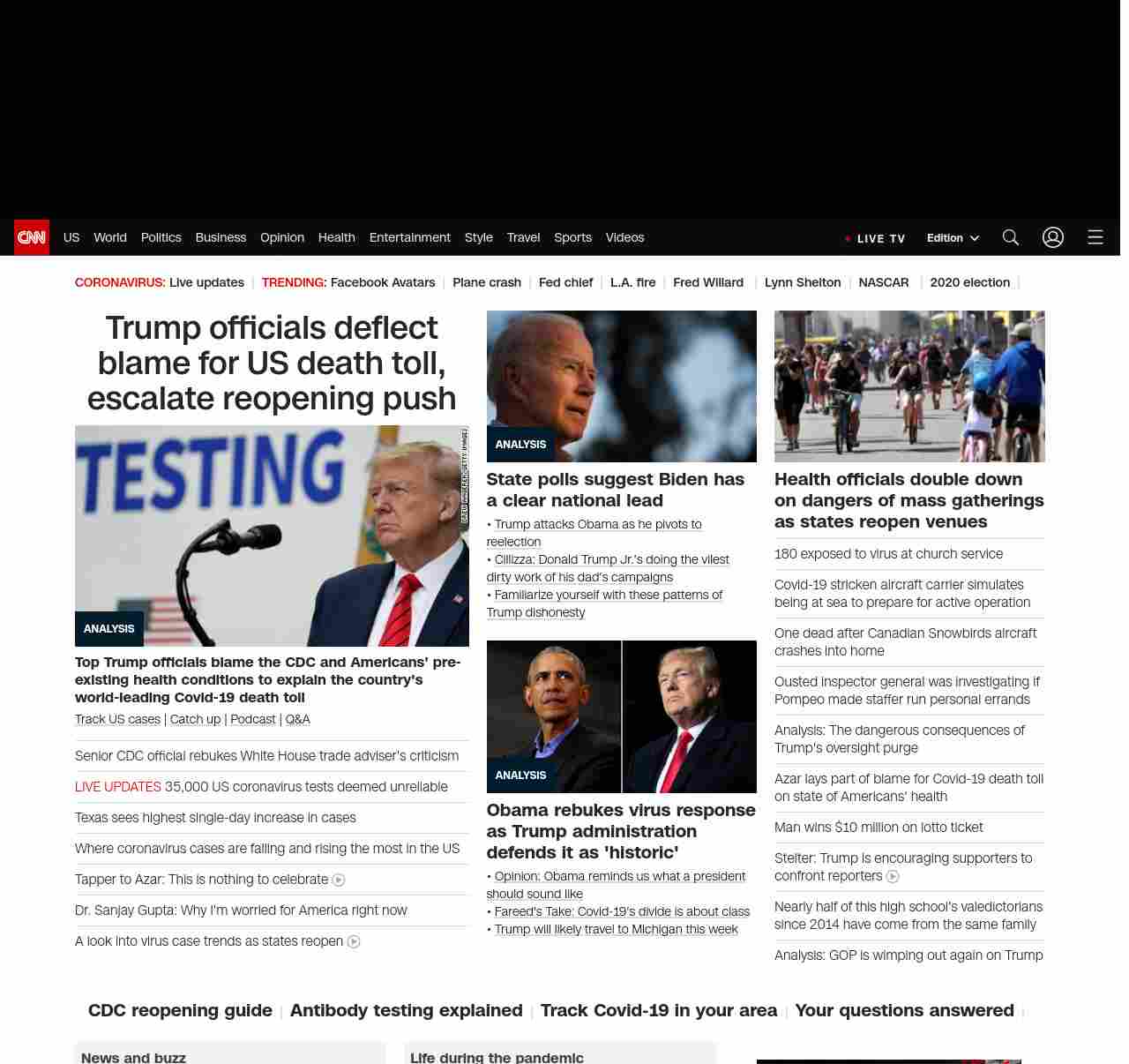 CNN1: FOXVCNN=|Trump officials deflect blame for US death toll, escalate reopening push| ((lubuntu at wor2))