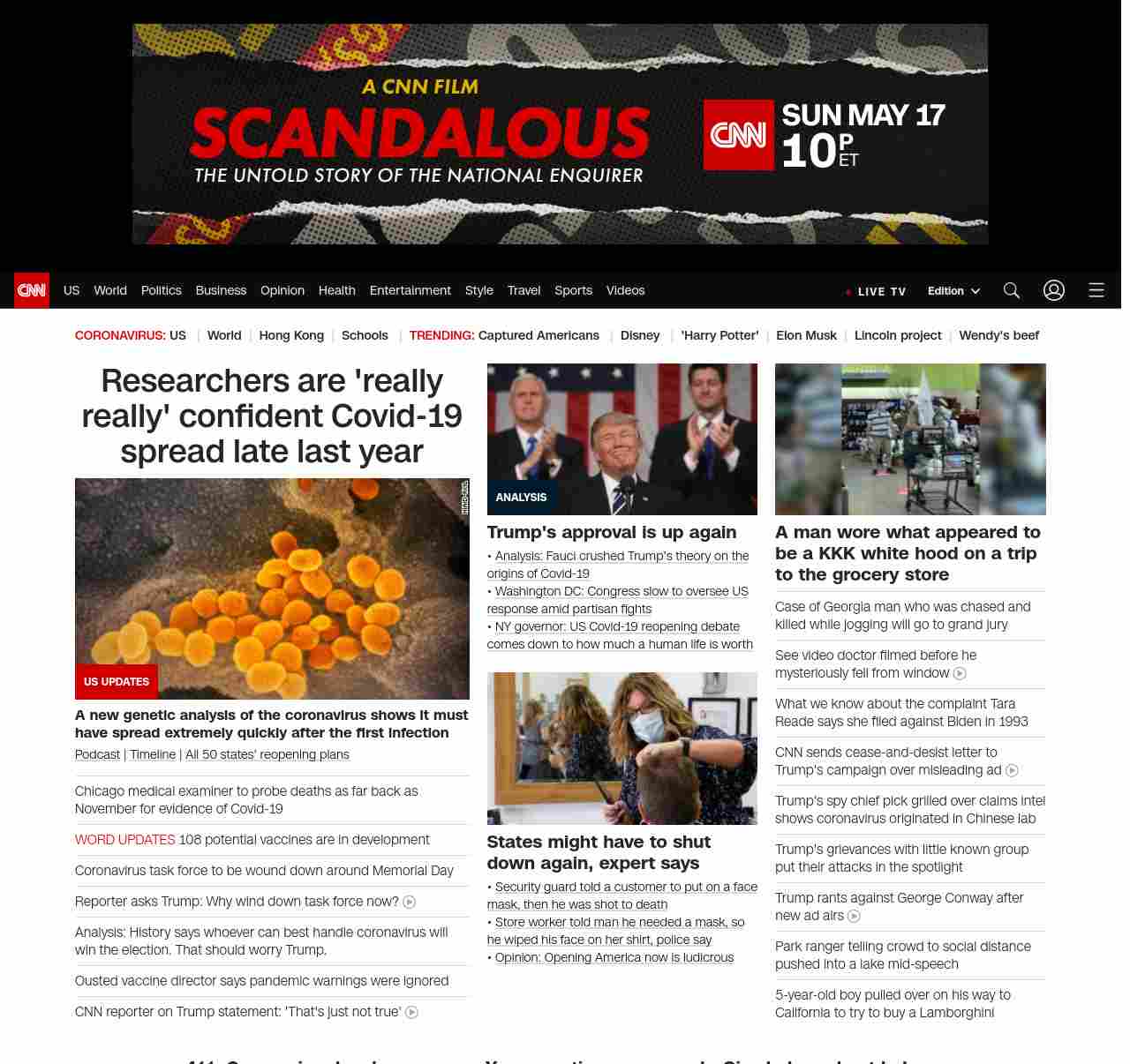 || screaming-banner-text banner-text-size–char-47″ data-analytics=”_list-hierarchical-xs_article_”> Coronavirus task force to be wound down around Memorial Day ||=”banner-text screaming-banner-text banner-text-size–char-47″ data-analytics=”_list-hierarchical-xs_hyperlink_”>Researchers are ‘really really’ confident Covid-19 spread late last year