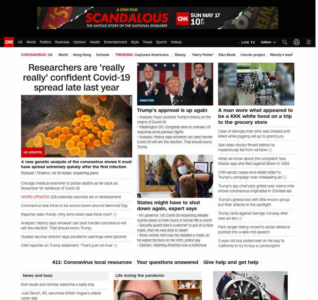 || screaming-banner-text banner-text-size–char-47″ data-analytics=”_list-hierarchical-xs_article_”> Coronavirus task force to be wound down around Memorial Day ||” , title: “CNN – Breaking News, Latest News and Videos” , siblings: {“articleList”:[{“uri”:”/2020/05/05/politics/white-house-coronavirus-task-force-winding-down/index.html”,”headline”:”Coronavirus task force to be wound down around Memorial Day”,”thumbnail”:”//cdn.cnn.com/cnnnext/dam/assets/200505150639-02-coronavirus-task-force-briefing-0325-small-11.jpg”,”duration”:””,”description”:””,”layout”:””