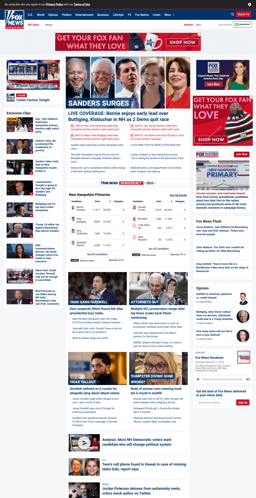 FN: [[GRANITE GOLD]] Bernie beats Buttigieg to win New Hampshire, as Klobuchar scrambles 2020 race with surge to third ((lubuntu at wor2))