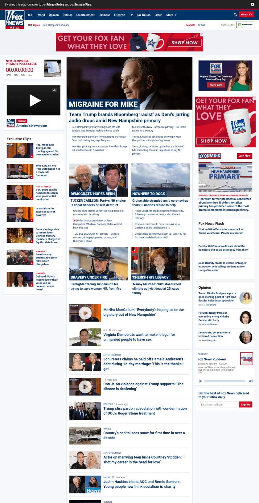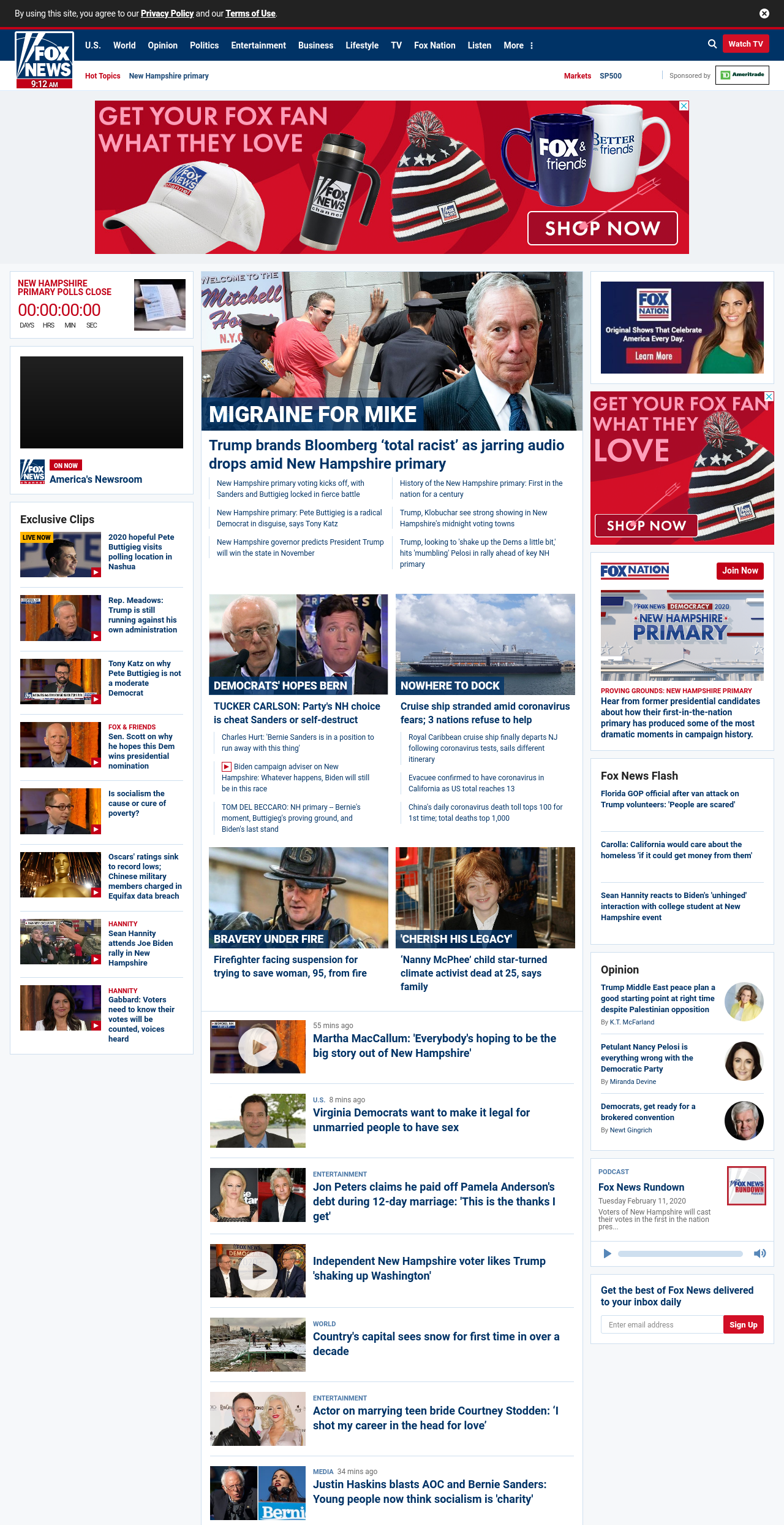 FN: [[MIGRAINE FOR MIKE]] Team Trump brands Bloomberg ‘racist’ as Dem's jarring audio drops amid New Hampshire primary ((lubuntu at wor2))