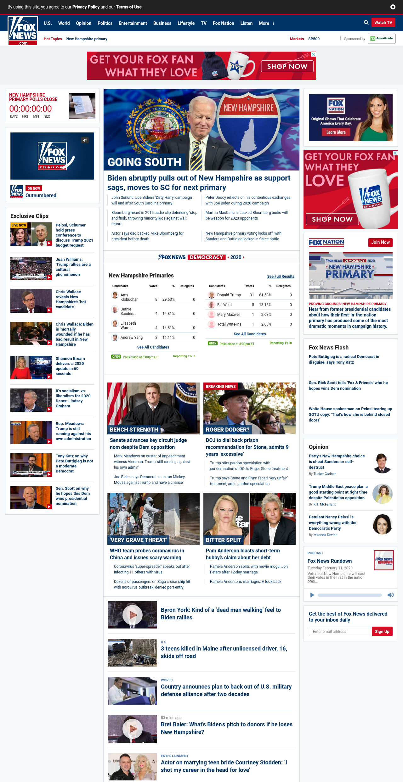 FN: [[GOING SOUTH]] Biden abruptly pulls out of New Hampshire as support sags, moves on to SC for next primary ((lubuntu at wor2))