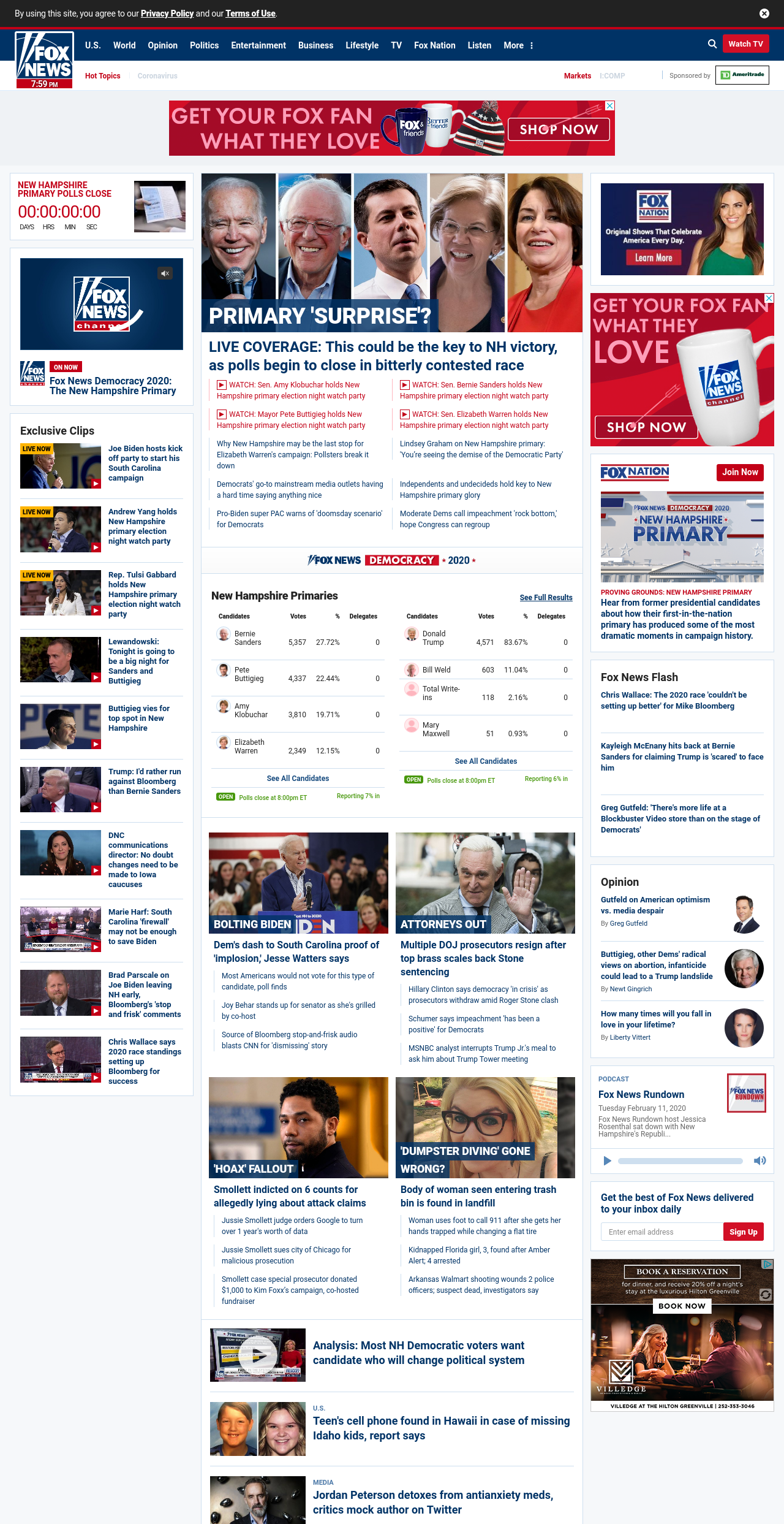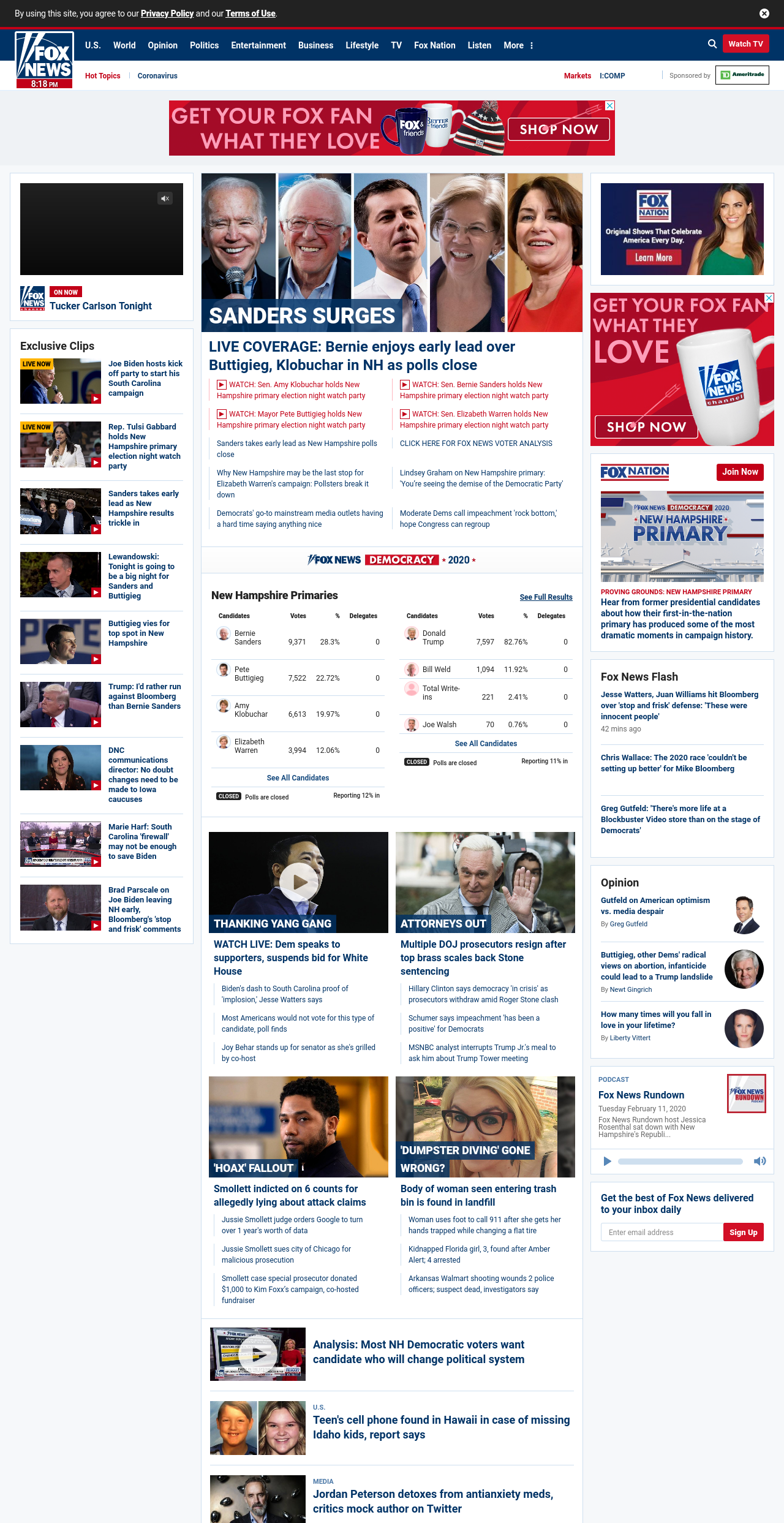 =”https://www.foxnews.com/elections/2020/primary-results/live-blog“>LIVE COVERAGE: Bernie enjoys early lead over Buttigieg, Klobuchar in NH as polls close