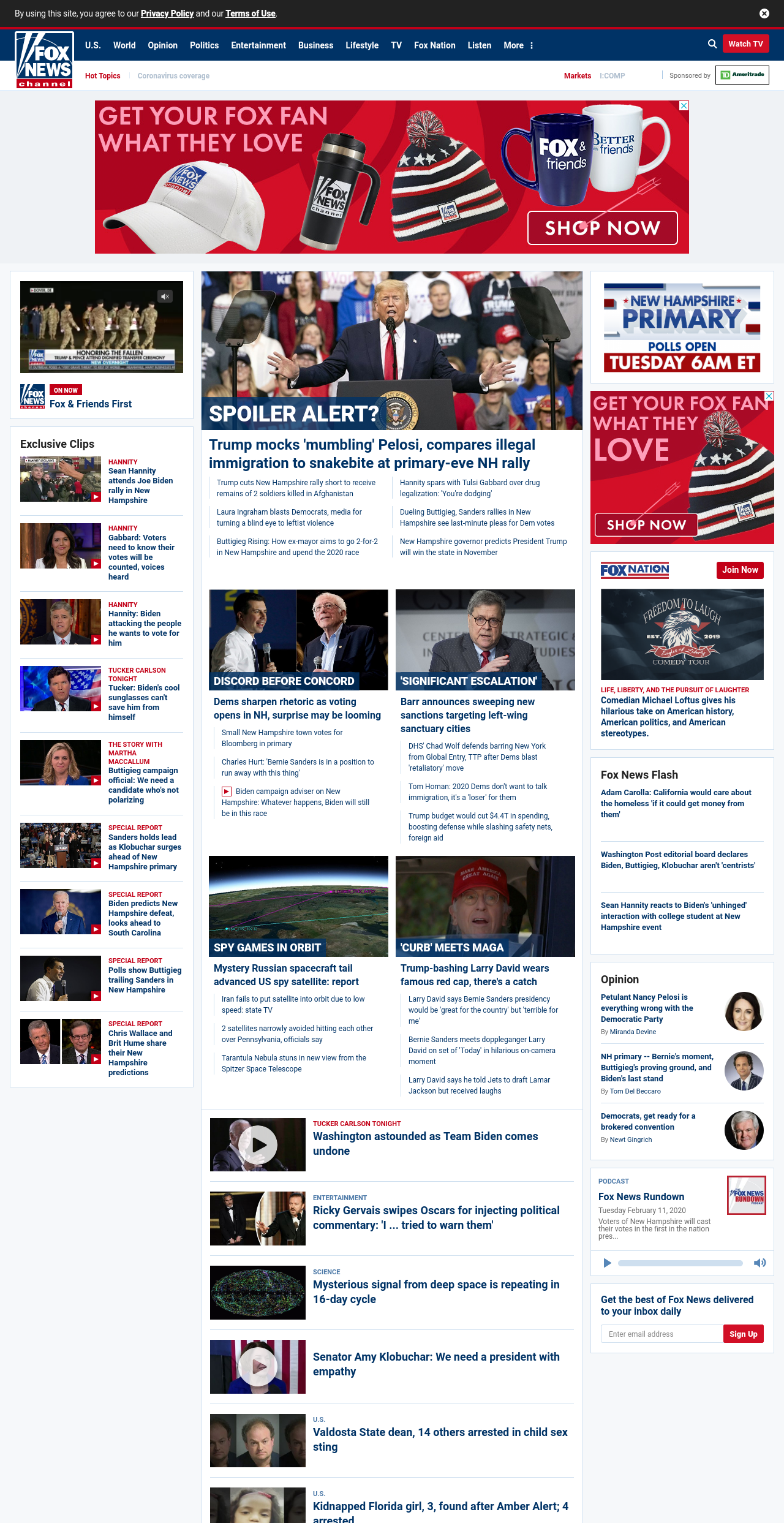 FN: [[SPOILER ALERT?]] WATCH LIVE: Trump takes shots at Pelosi' s SOTU showdown in New Hampshire rally ((lubuntu at wor2))