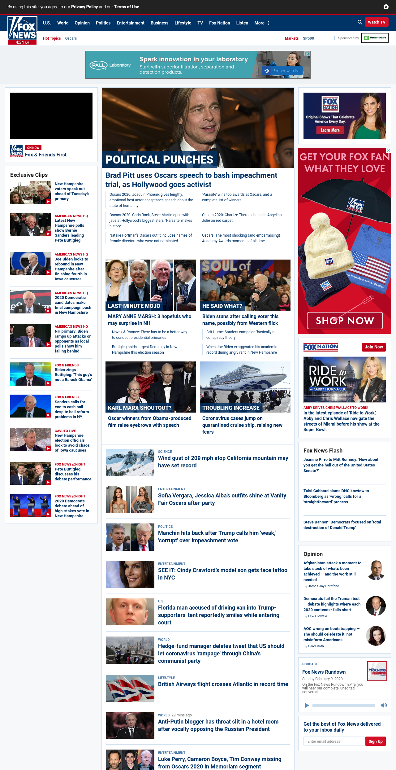 FN: [[POLITICAL PUNCHES]] Brad Pitt uses Oscars speech to bash impeachment trial, as Hollywood goes activist ((lubuntu at wor2))