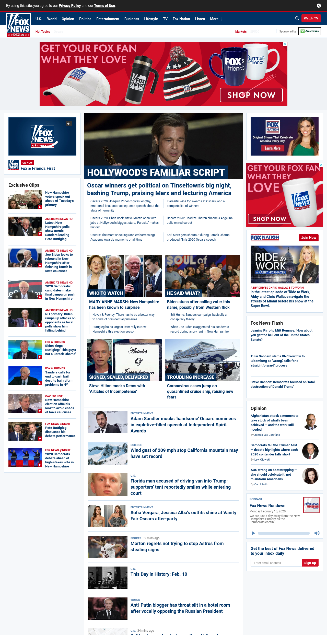 =”https://www.foxnews.com/entertainment/brad-pitt-oscars-2020-speech-senators-john-bolton-impeachment“>Oscar winners get political on Tinseltown’s big night, bashing Trump, praising Marx and lecturing America