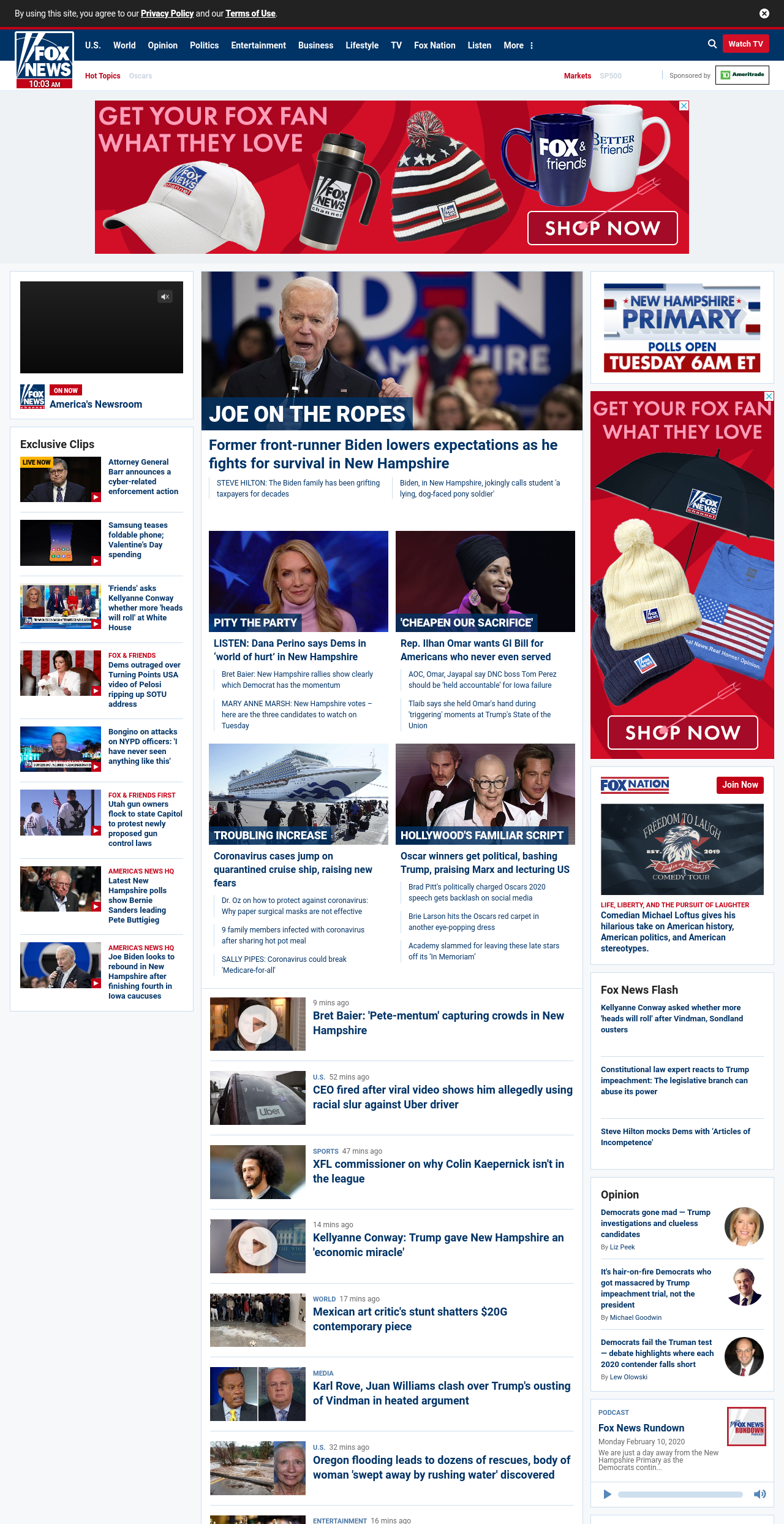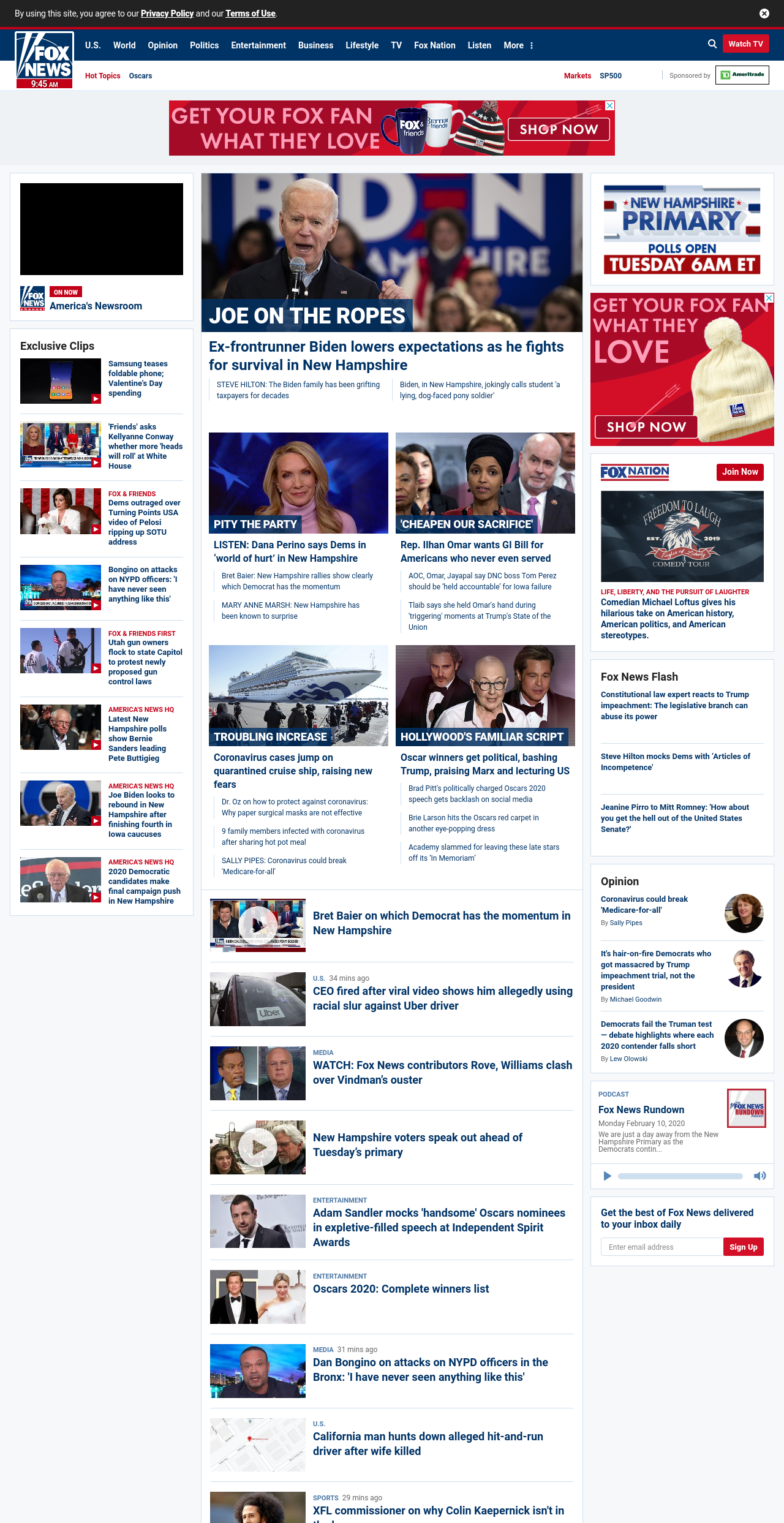 FN: [[JOE ON THE ROPES]] Ex-frontrunner Biden lowers expectations as he fights for survival in New Hampshire ((lubuntu at wor2))