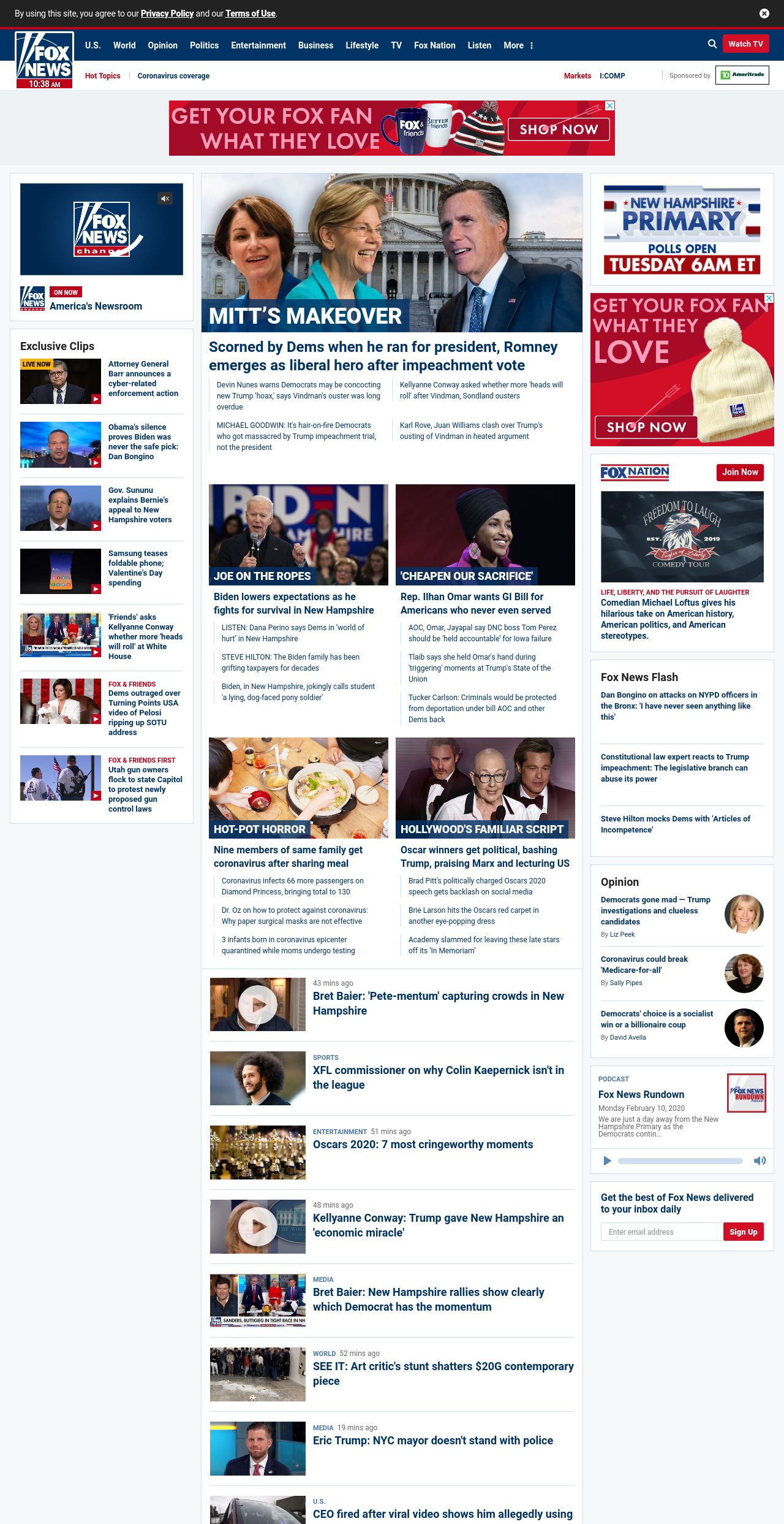 FN: [[MITT’S MAKEOVER]] Scorned by Dems when he ran for president, Romney emerges as liberal hero after impeachment vote ((lubuntu at wor2))