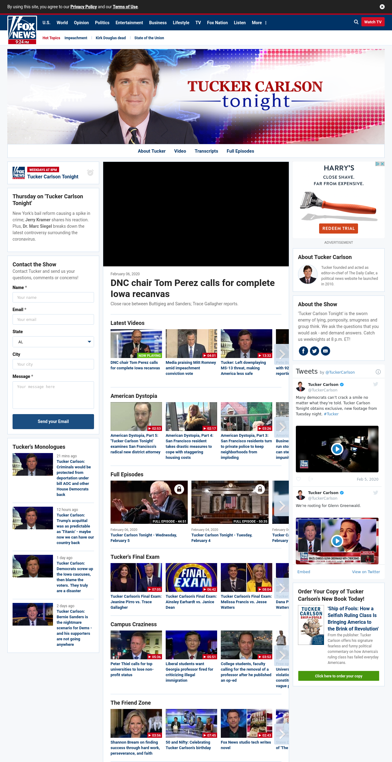 TC: DNC chair Tom Perez calls for complete Iowa recanvas ((tuckercarlson_____)) ((lubuntu at wor2)) Close race between Buttigieg and Sanders; Trace Gallagher reports