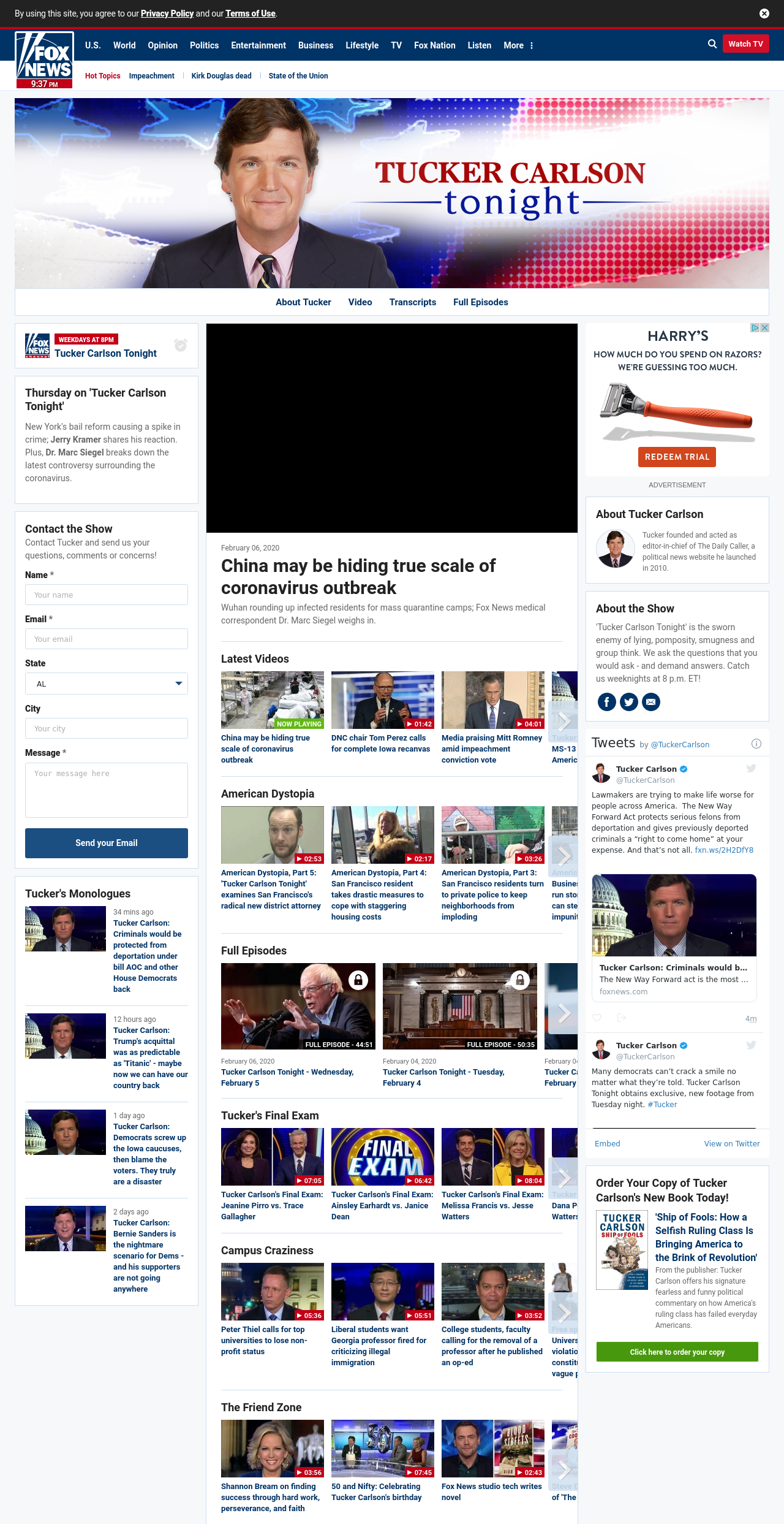 TC: China may be hiding true scale of coronavirus outbreak ((tuckercarlson_____)) ((lubuntu at wor2)) Wuhan rounding up infected residents for mass quarantine camps; Fox News medical correspondent Dr. Marc Siegel weighs in