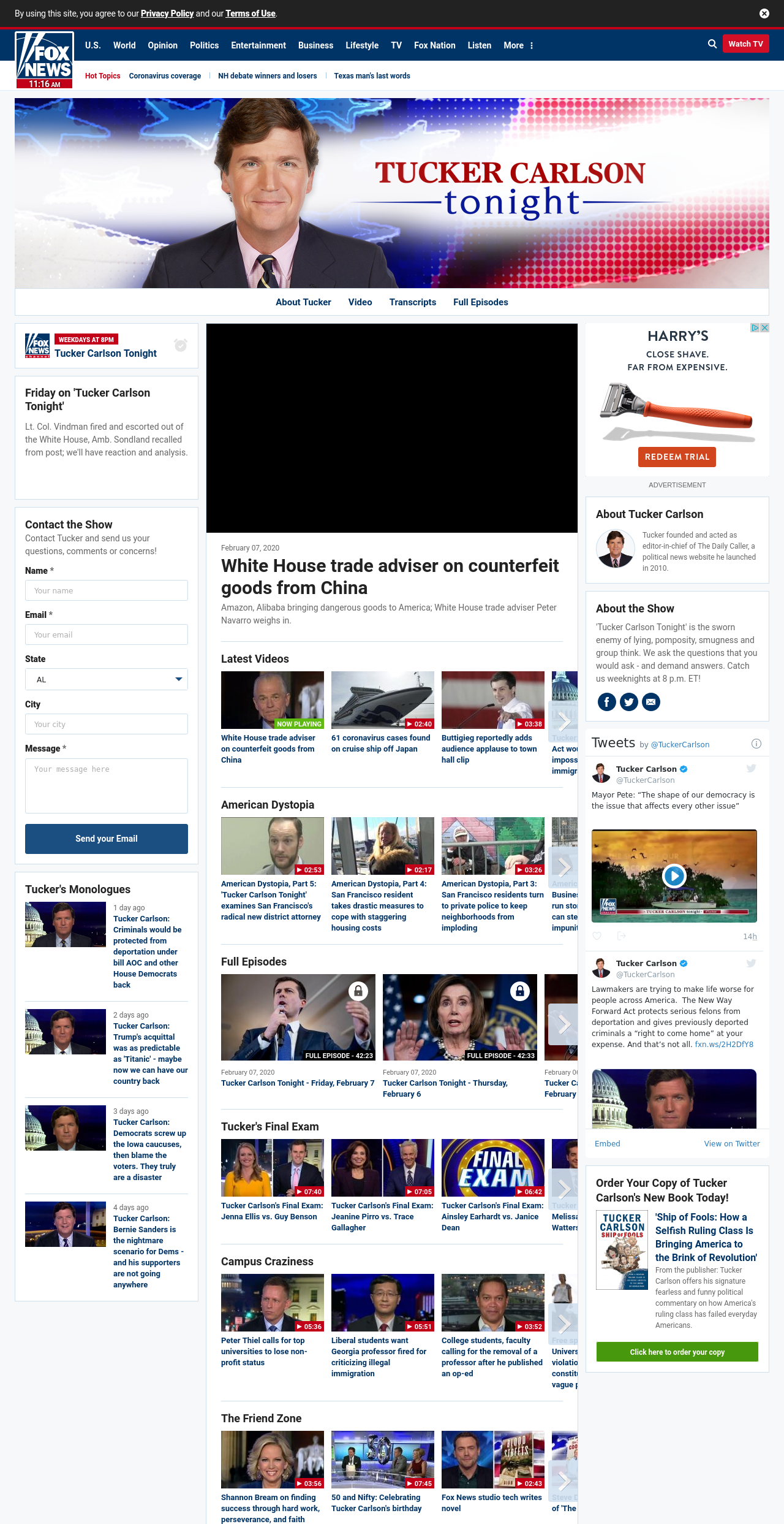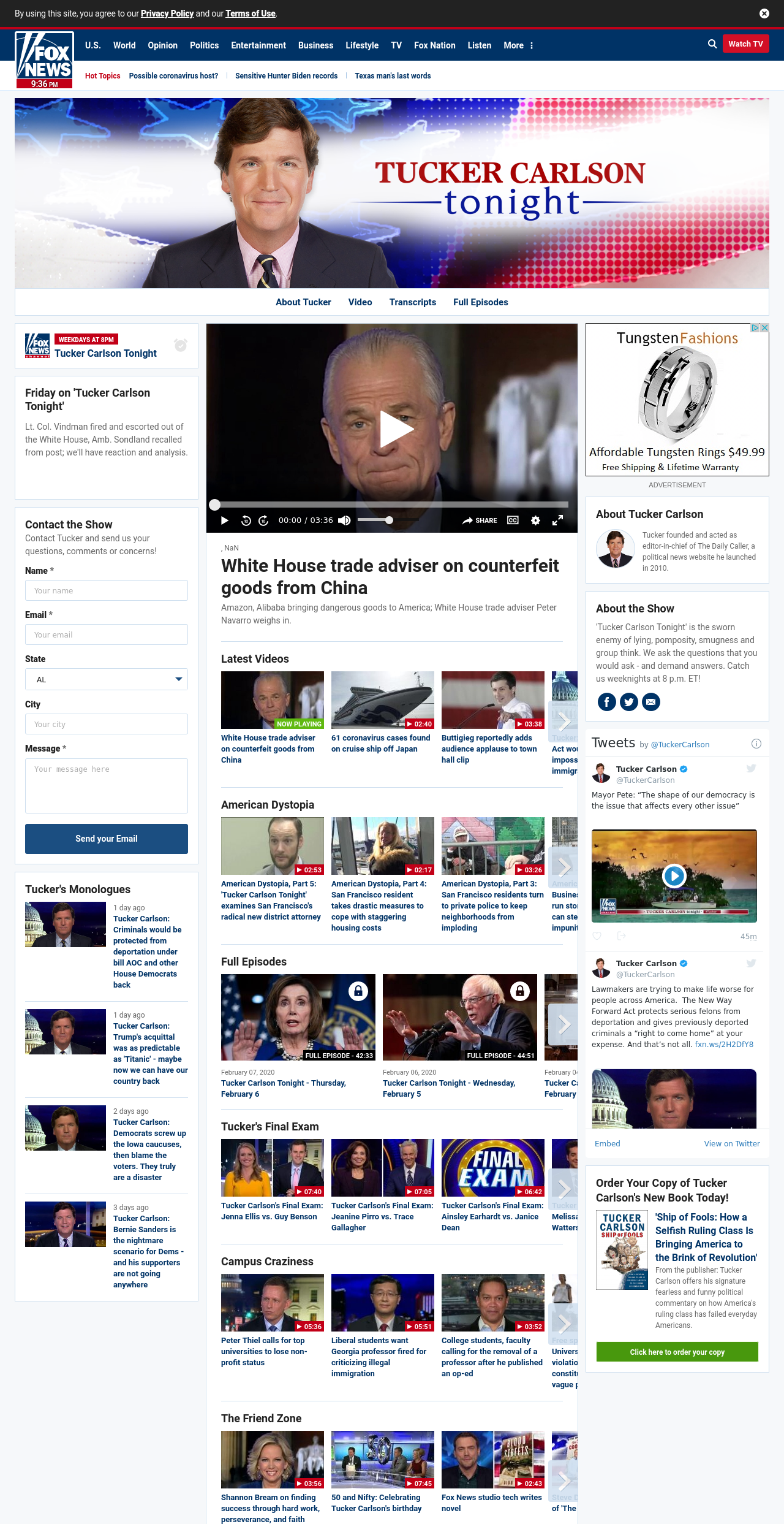 TC: White House trade adviser on counterfeit goods from China ((tuckercarlson_____)) ((lubuntu at wor2)) Amazon, Alibaba bringing dangerous goods to America; White House trade adviser Peter Navarro weighs in
