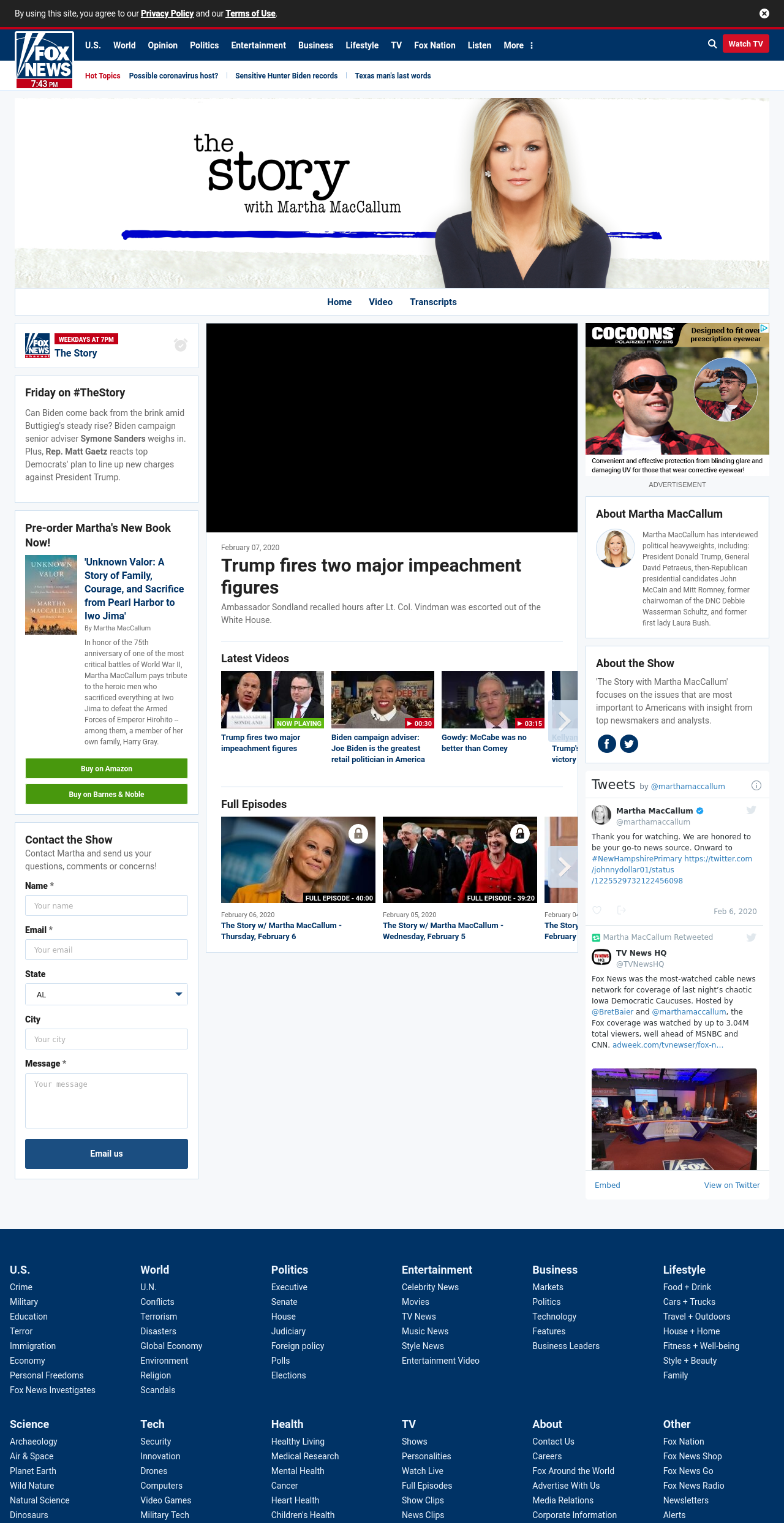 ST: Trump fires two major impeachment figures ((storymaccallum____)) ((lubuntu at wor2)) Ambassador Sondland recalled hours after Lt. Col. Vindman was escorted out of the White House