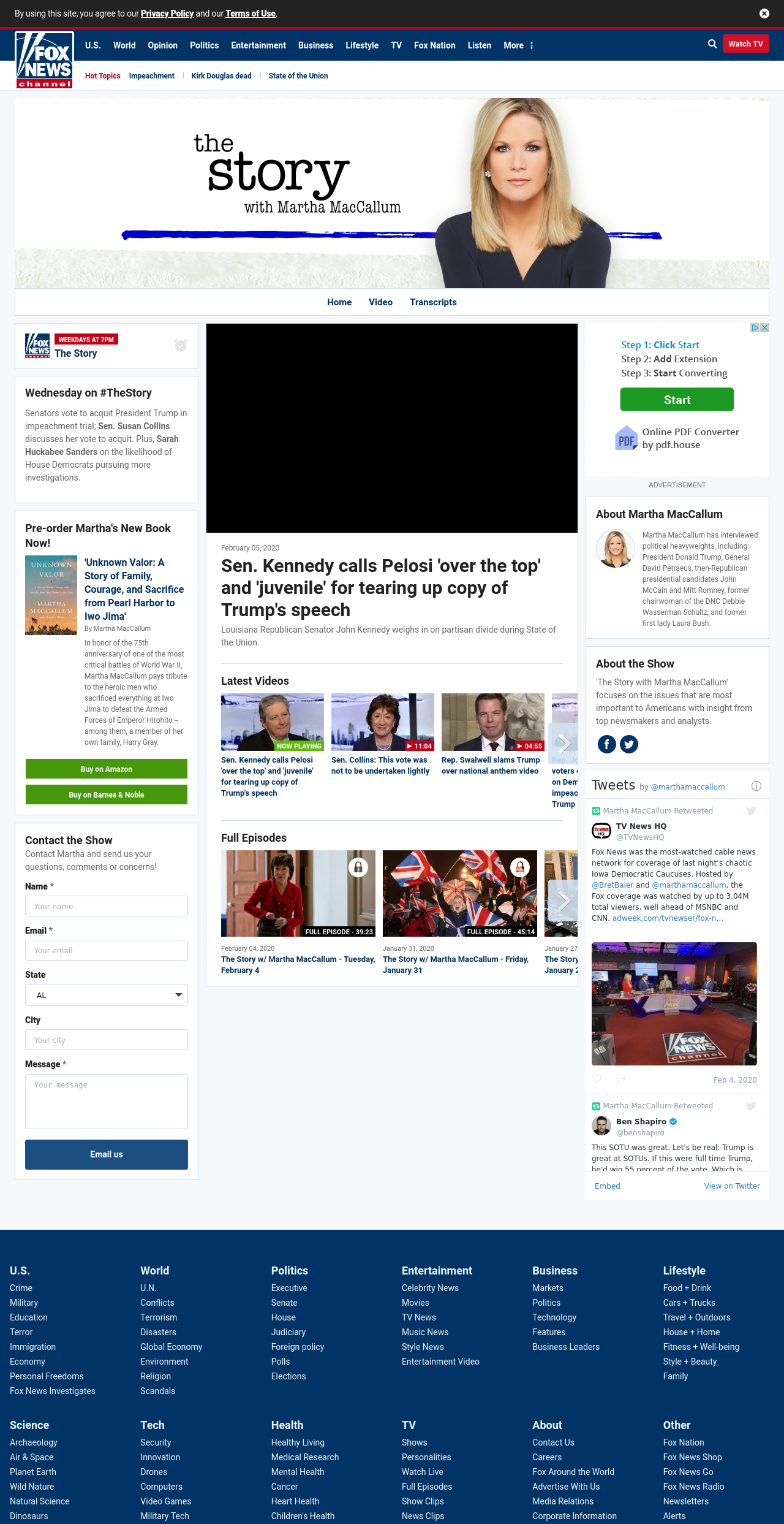 ST: Sen. Kennedy calls Pelosi ‘over the top’ and ‘juvenile’ for tearing up copy of Trump’s speech ((storymaccallum____)) ((lubuntu at wor2)) Louisiana Republican Senator John Kennedy weighs in on partisan divide during State of the Union